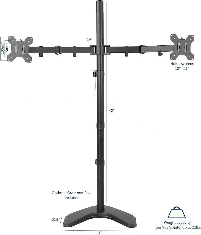- Weight capacity (per VESA plate) up to 22lbs
