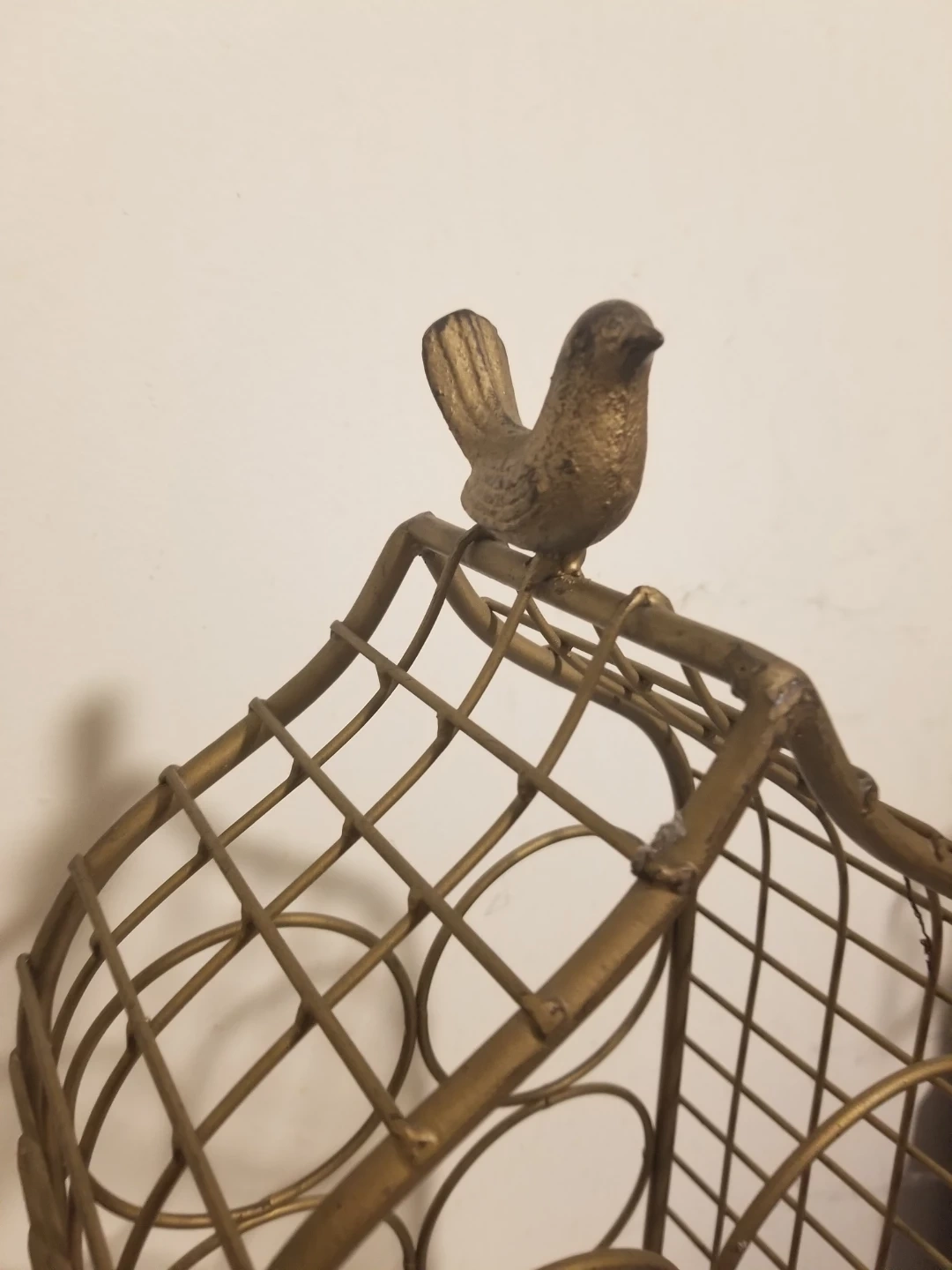 It features a unique bird detail on top, making it a charming decorative piece as well as functional storage for a variety of things like bottles, towels, craft jars, etc.. Can also be your next d.i.y. art project!