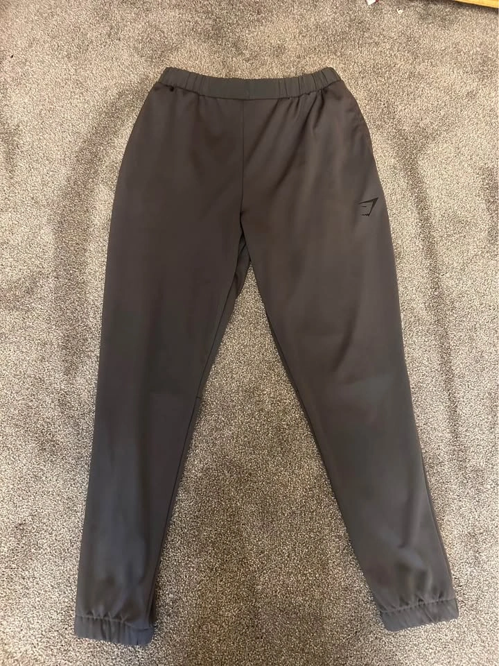 These are the Gymshark Arrival Knit Block Joggers, perfect for running and day-to-day activities. They are a size medium and usually retail for $60.