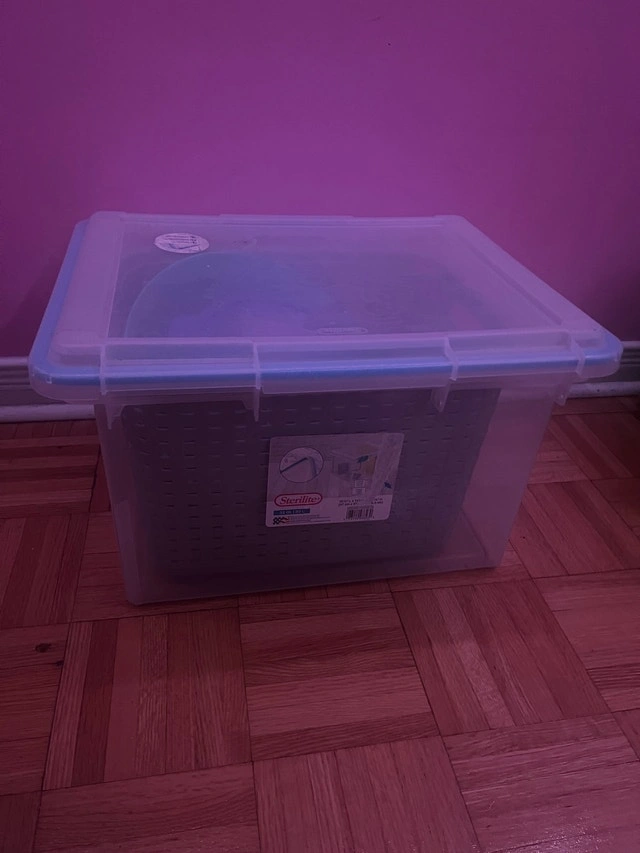 Sterilite 30 Liter Gasket Box, Weather-Resistant Clear Storage Bin, Blue, 30 Liter. Condition: Used - Like new. For Sale By: Owner. Curbside pick up. Cash accepted. Cashless payment.