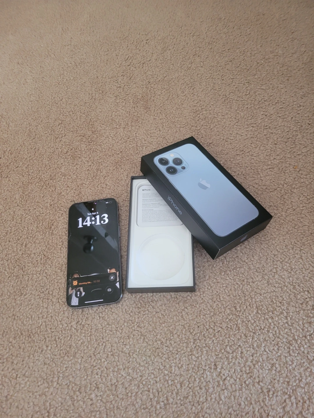 Selling an Apple iPhone 13 Pro in Sierra Blue. It's a fantastic phone, though it does have some minor cosmetic wear. Includes the original box for safekeeping.