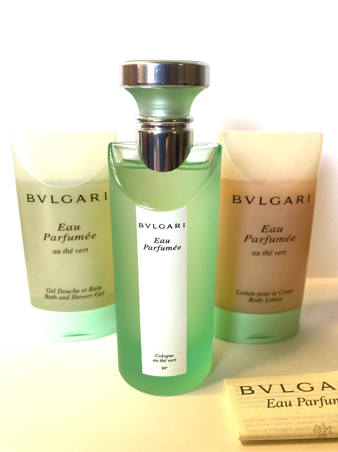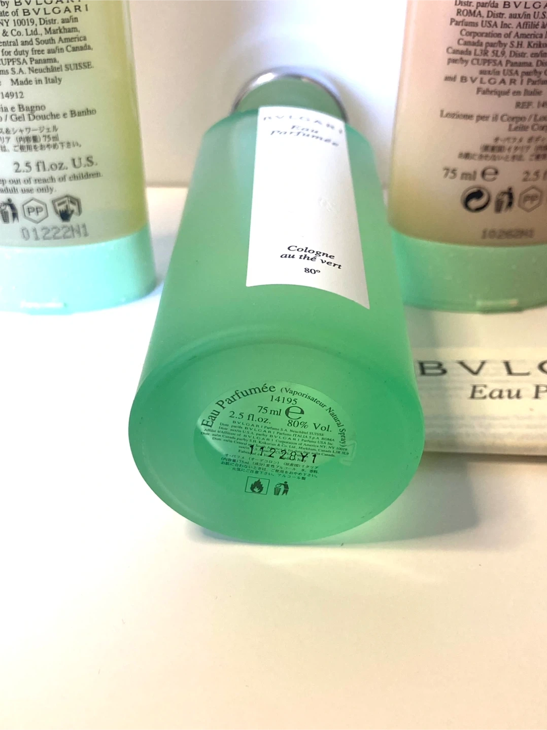 Selling a BVLGARI Eau Parfumee au the vert set! This includes the cologne, bath and shower gel, and body lotion. The cologne is 75ml. A perfect set for anyone who loves a fresh, green scent!