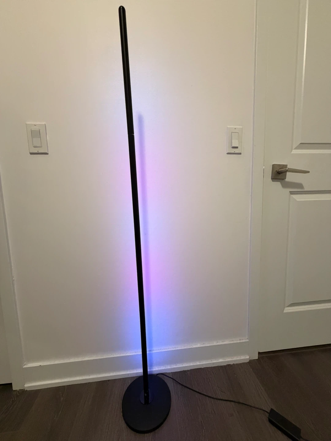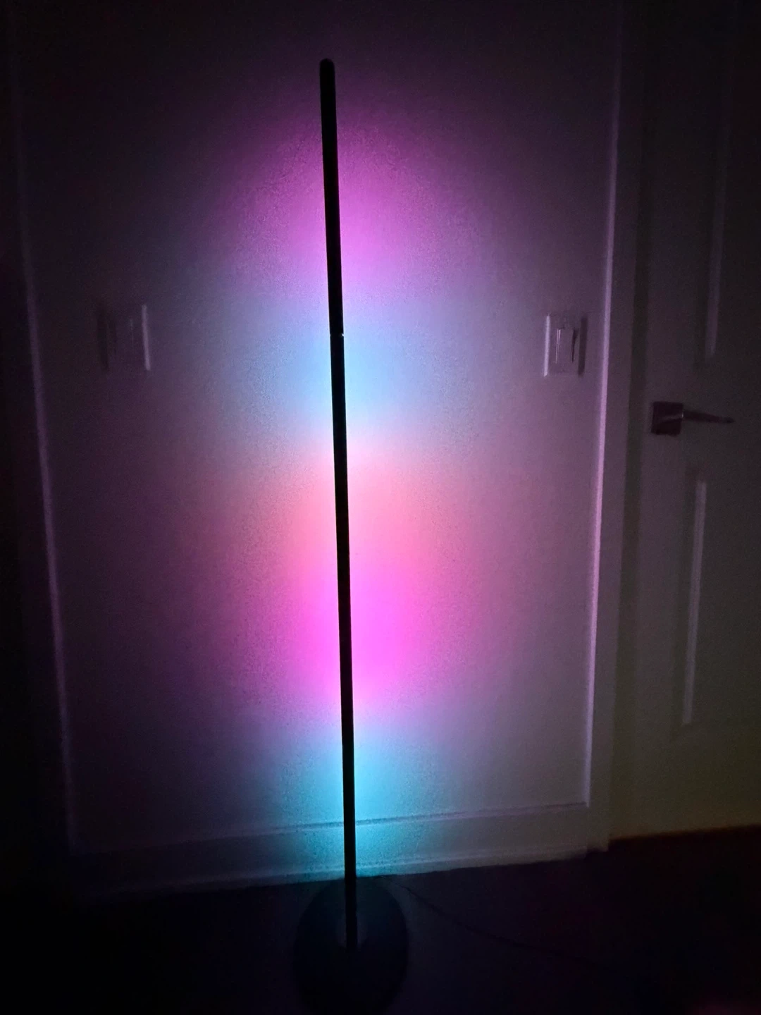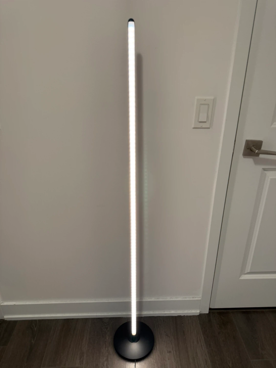 This sleek floor lamp provides adjustable lighting with a modern design. It's perfect for setting ambiance with its colour-changing capabilities. The lamp offers a range of brightness and colour options. Connectable with app.