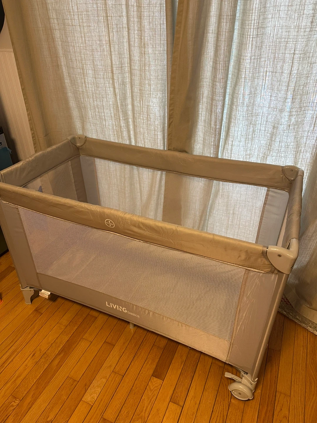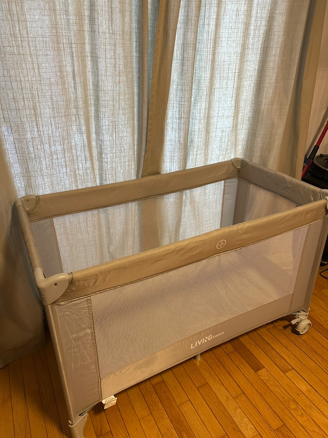 This LIVING Basics playpen is perfect for keeping your little one safe and entertained. It's easy to set up and move around with its wheels. Great for travel or home use!