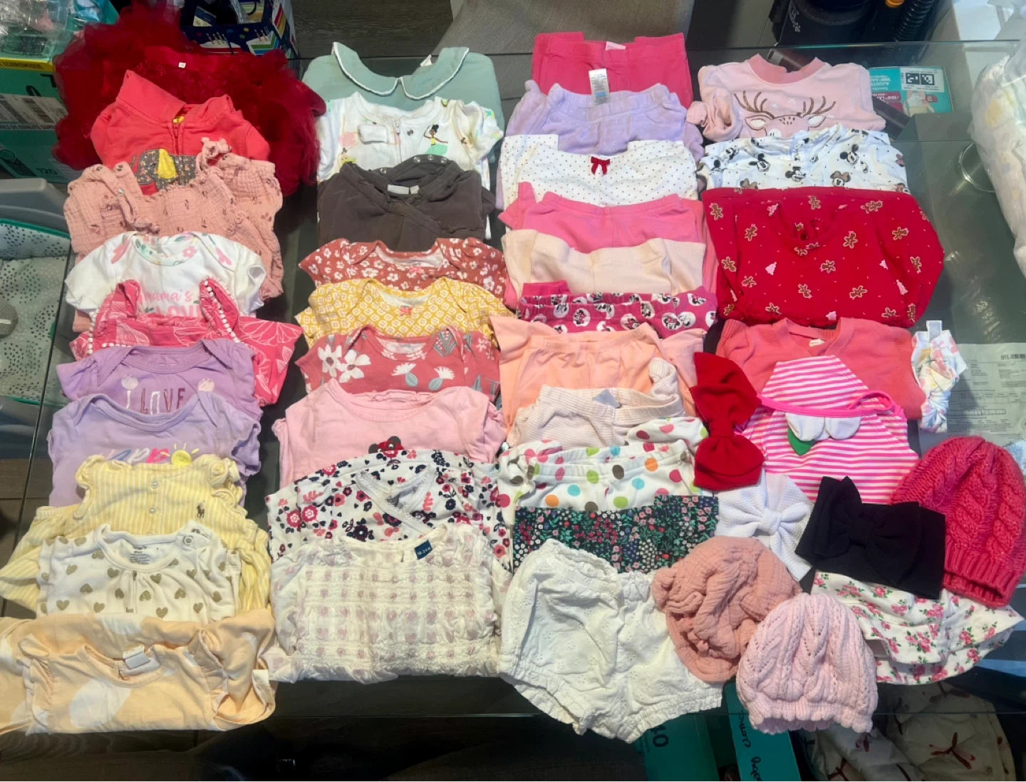 Total of 35 pieces plus summer hat, bows and beanies. Brands are Ralph Lauren, US Polo, Carter's, Disney, H&M, Baby Gap, Old Navy, Gymboree, etc.