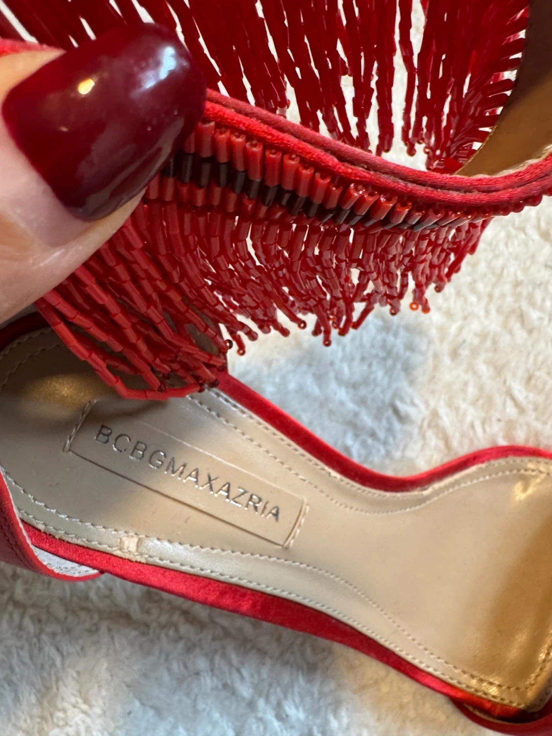 BCBGMAXAZRIA Red Fringe Stiletto Heels Size 8.5M
