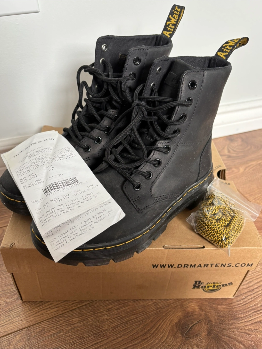 Brand new Dr. Martens Combs Leather Wyoming boots. Black leather. Size US 7, UK 5, EU 38. Comes in original box with extra laces. Never worn.