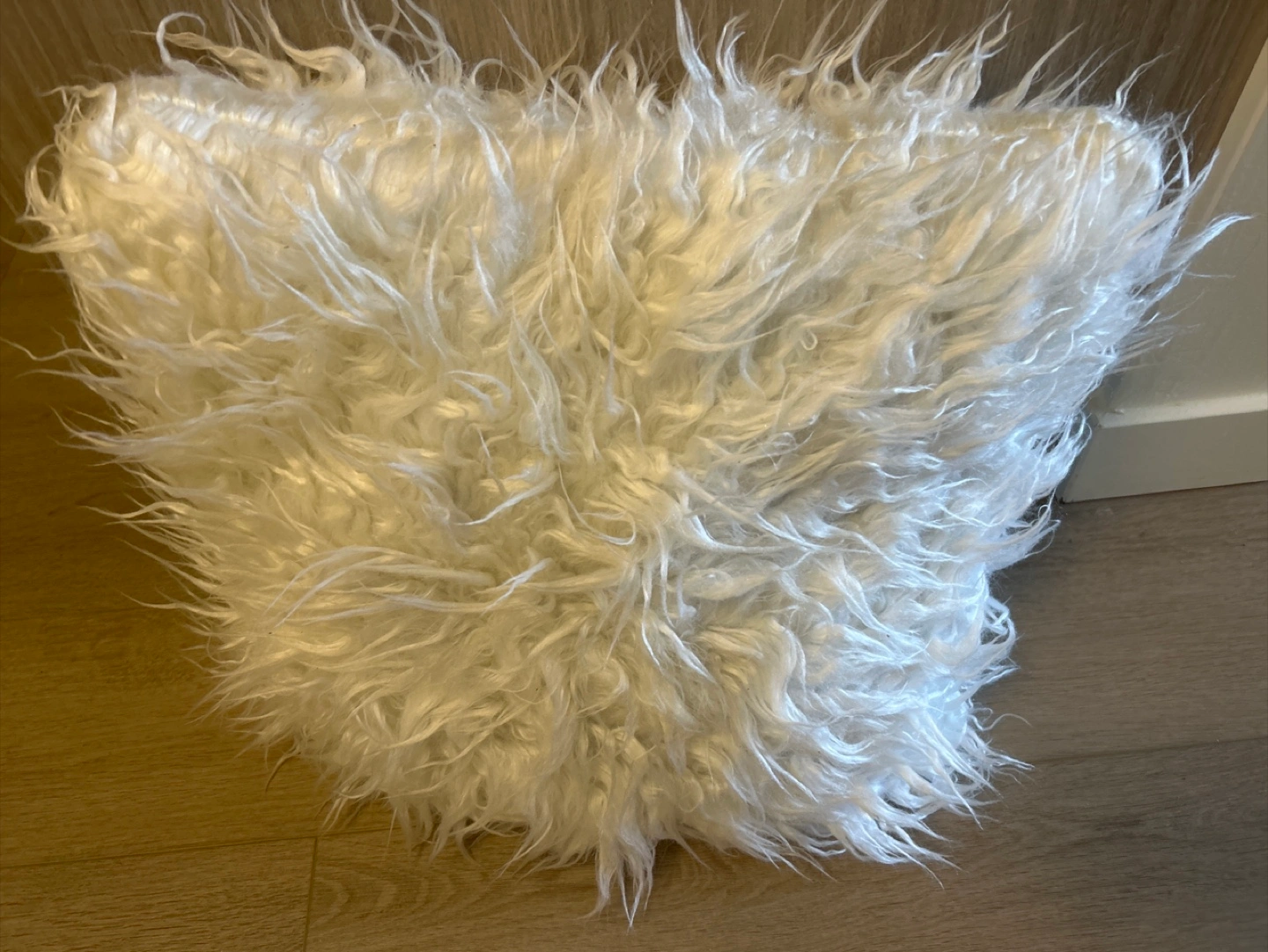Cozy white pillow with long faux fur. It's a great way to add texture to your couch or armchair. Its fluffy material is soft to the touch. Measures approximately 18x18 inches. from no pet no smoking home