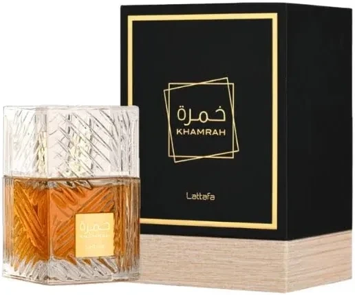 Lattafa Khamrah is a popular unisex Eau de Parfum with an aromatic spicy and gourmand scent profile, featuring prominent notes of cinnamon, dates, praline, and vanilla.