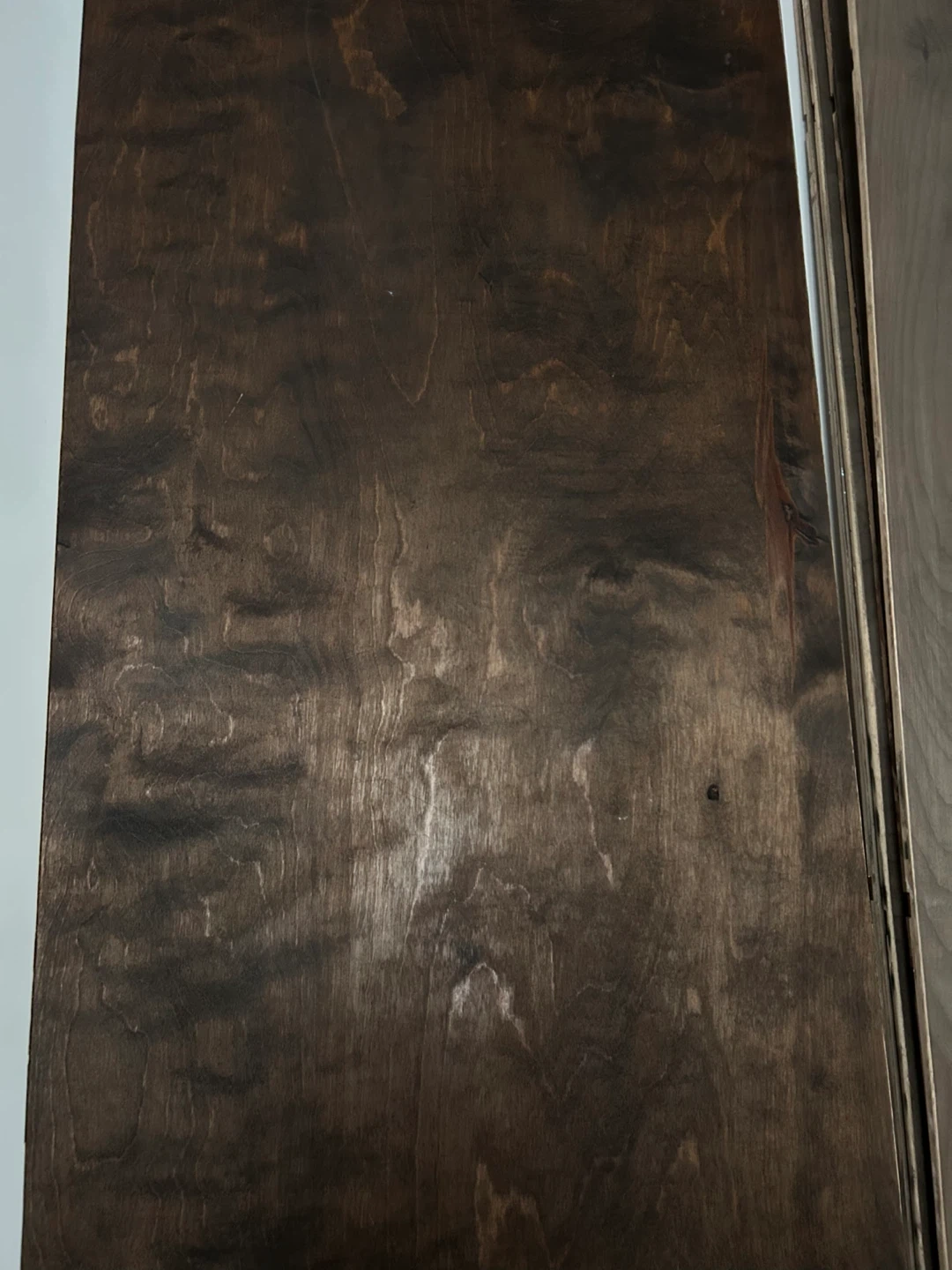 **stained only on one side for the 1’ wide boards, back side of the 2’ wide boards is last image — the pieces glued on are meant to stabilize the 2x3 unstained pcs as legs to make 2 long tables ***