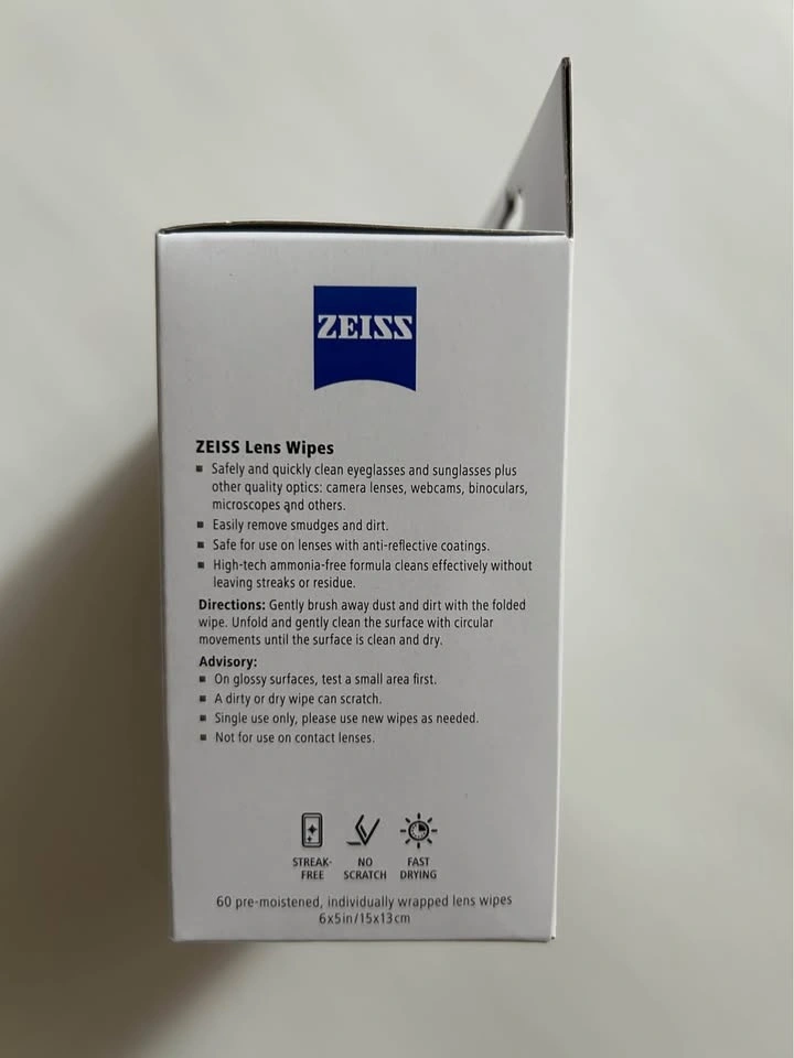 Brand New Sealed Box ZEISS 60 Lens Cleaning Wipes