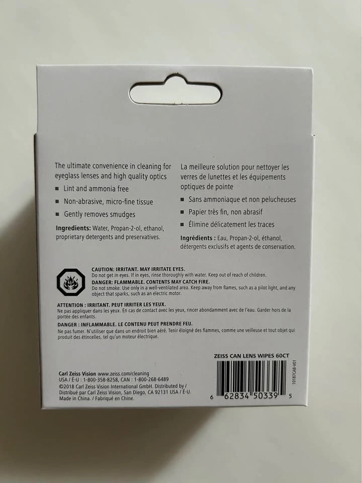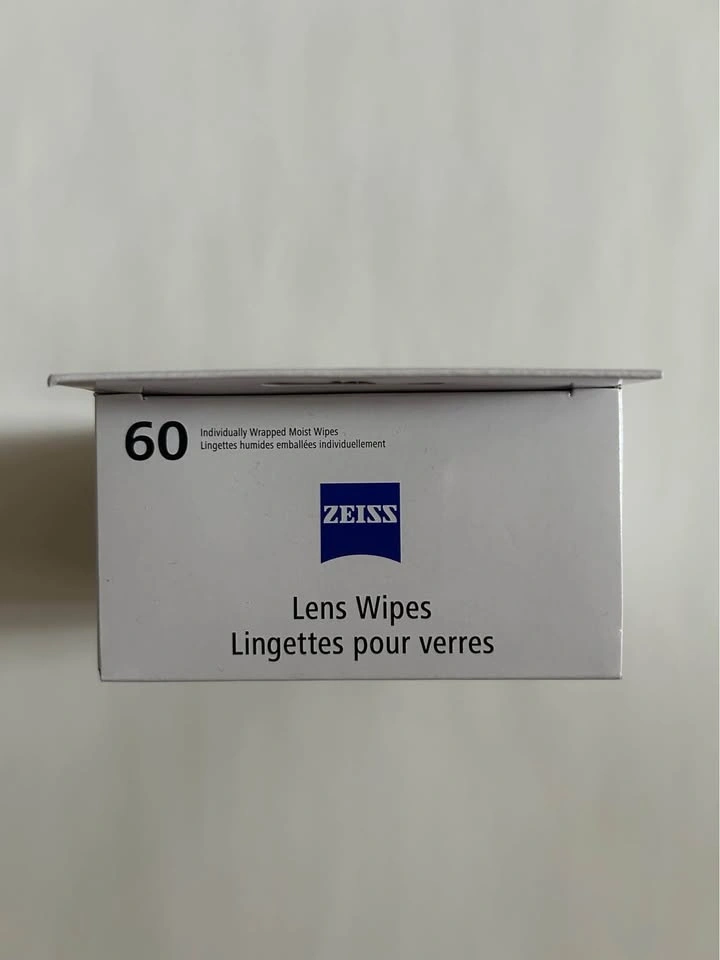Brand New Sealed Box of 60 ZEISS Lens Cleaning Wipes that are fast drying, no scratch and streak free. The ultimate convenience in cleaning for eyeglass lenses and high quality optics. Contains 60 pre-moistened, individually wrapped lens wipes. Dimensions: 6 x 5 in / 15 x 13 cm. Public meet Warden and highway 7 area. Cash only please.