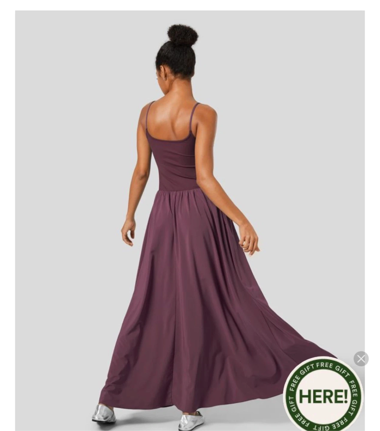Breezeful Pocket Flowy Flare Maxi Dress in Amaranth colour. It's a quick-dry casual slip dress with a flowy, flare skirt. It has a fitted bodice with adjustable spaghetti straps. This dress is great for a casual outing or a summer day!