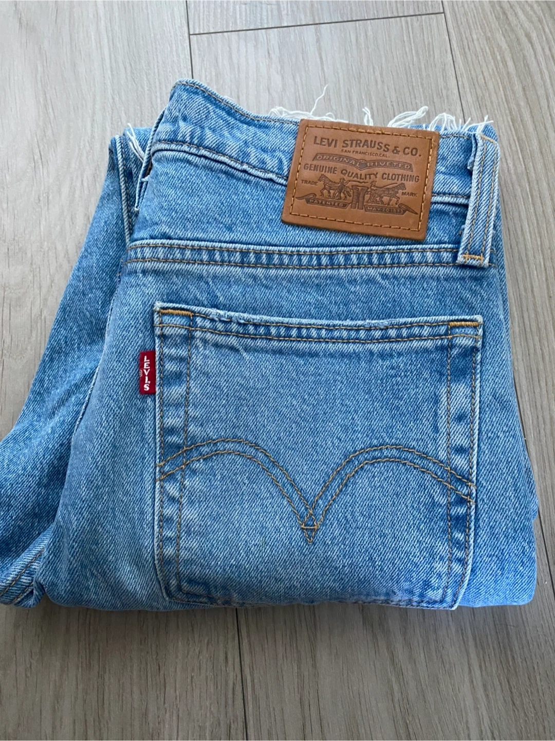 They're a light blue wash with a distressed hem.