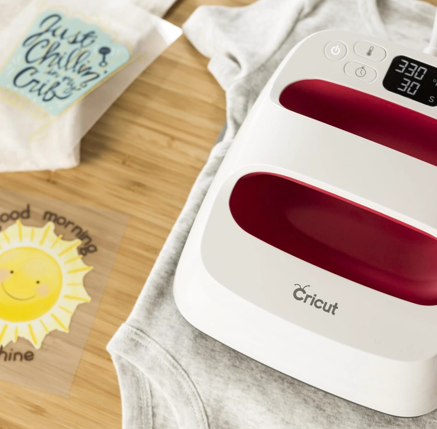 A NO-STRESS HEAT PRESS — Get pro-level heat-transfer results with Cricut EasyPress 2, the speed of a heat press and the convenience of an iron.