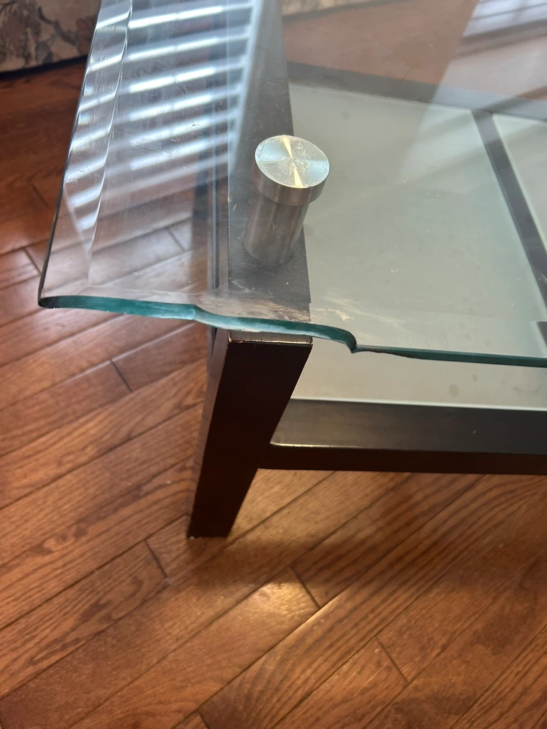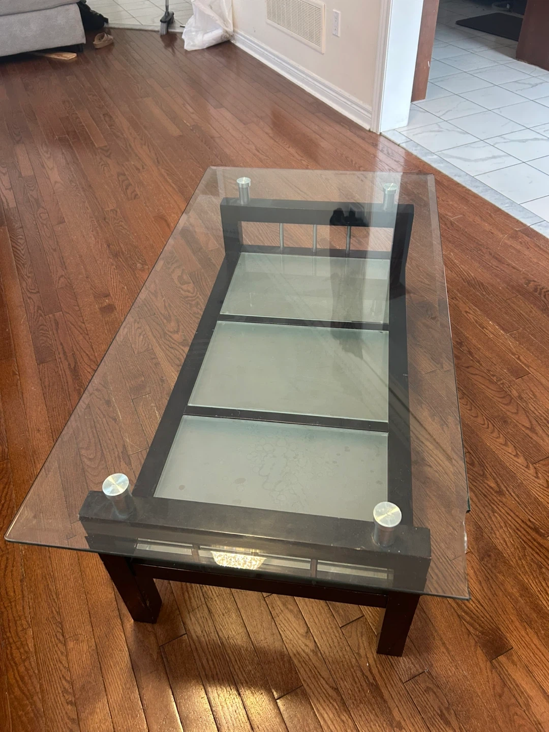 Glass Top Coffee Table with Dark Wood Frame