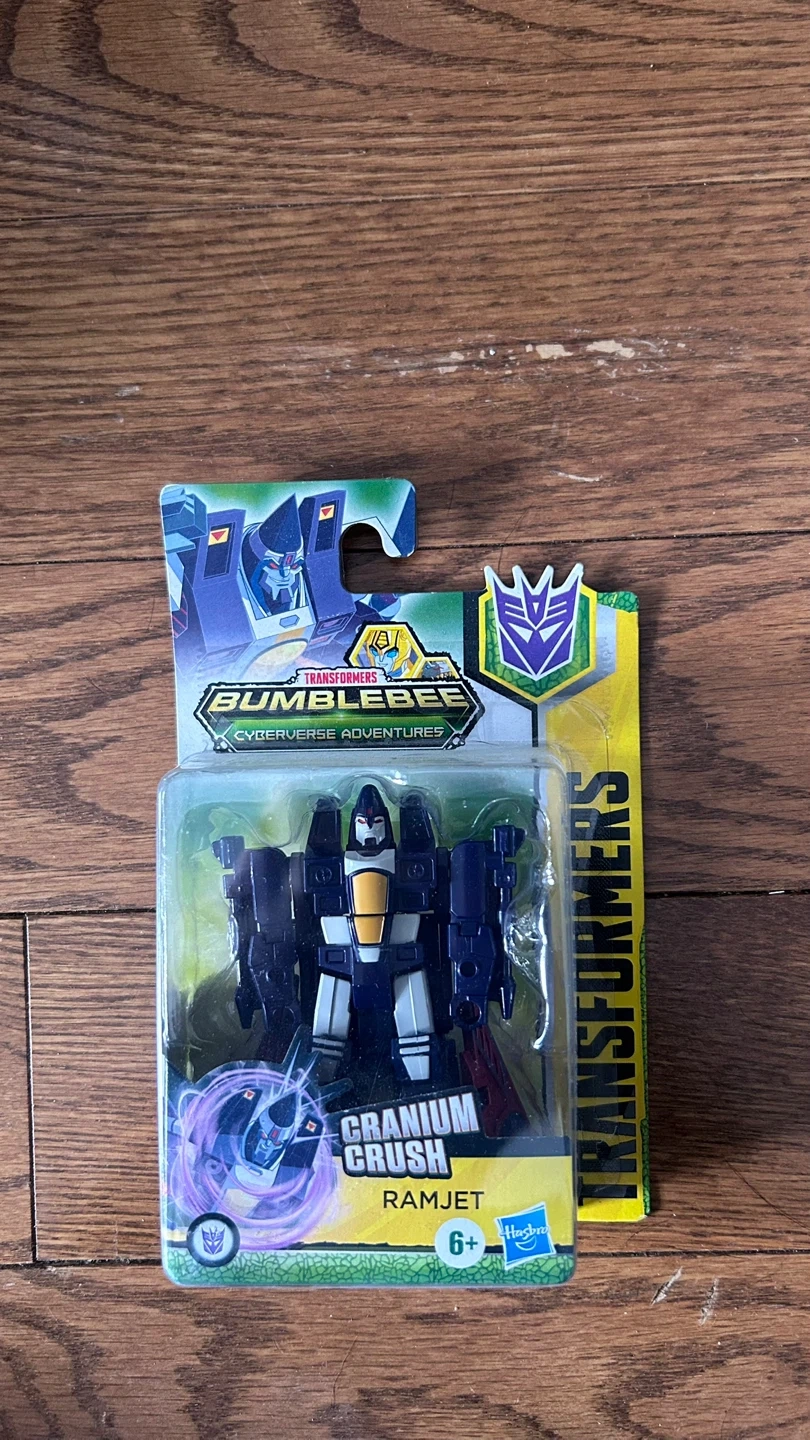 This is a Transformers Bumblebee Cyberverse Adventures action figure. It features Ramjet from the Cranium Crush line. Recommended for ages 6 and up.