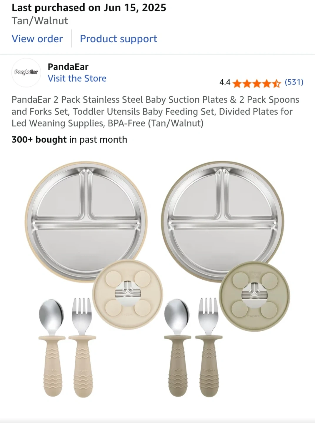 - PandaEar 2 Pack Stainless Steel Baby Suction Plates & Spoon and Fork Set