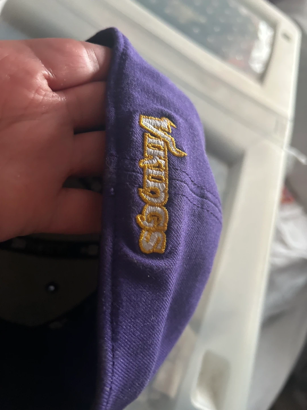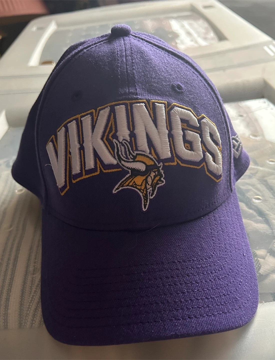 This is a purple New Era baseball cap with the Vikings logo. It's a stylish accessory for any fan. The cap is made for comfort and durability.