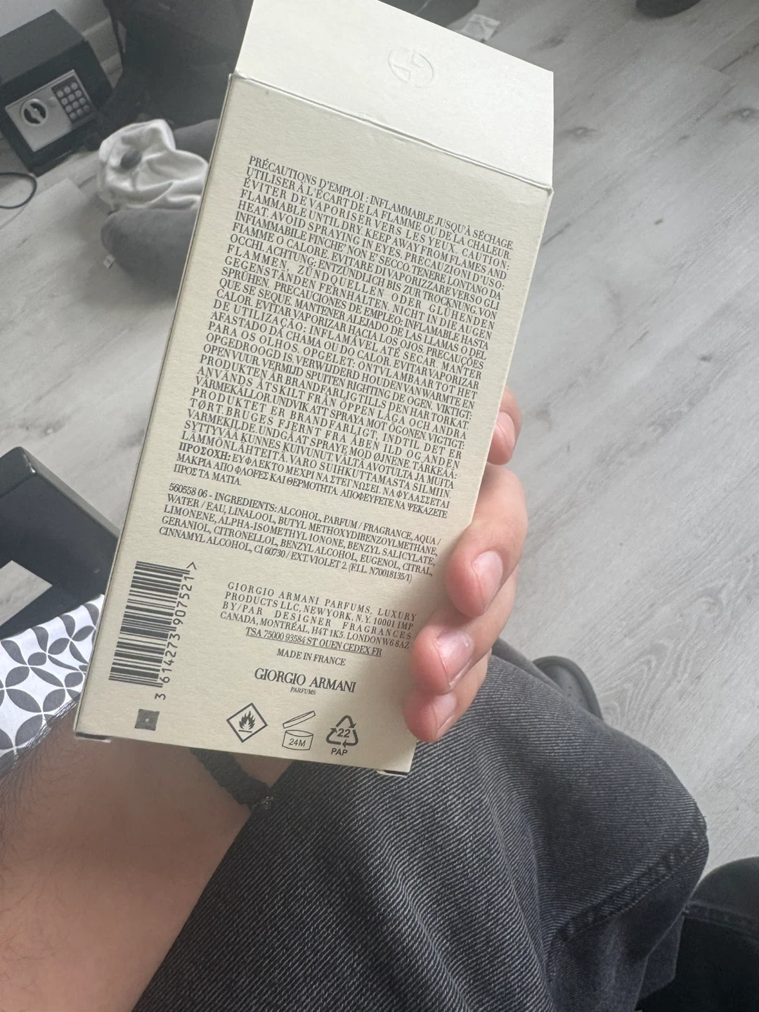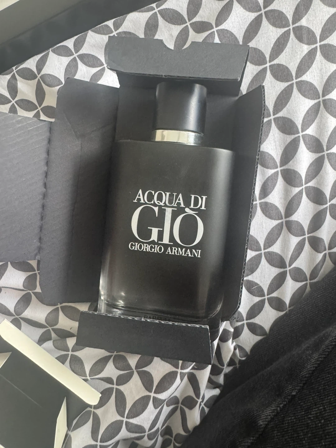 Acqua di Gio Parfum by Giorgio Armani. This is a refillable spray. Contains alcohol, parfum (fragrance), aqua (water), linalool, benzyl salicylate, limonene, geraniol, coumarin, citronellol, alpha-isomethyl ionone, and benzyl alcohol. I got the receipt !