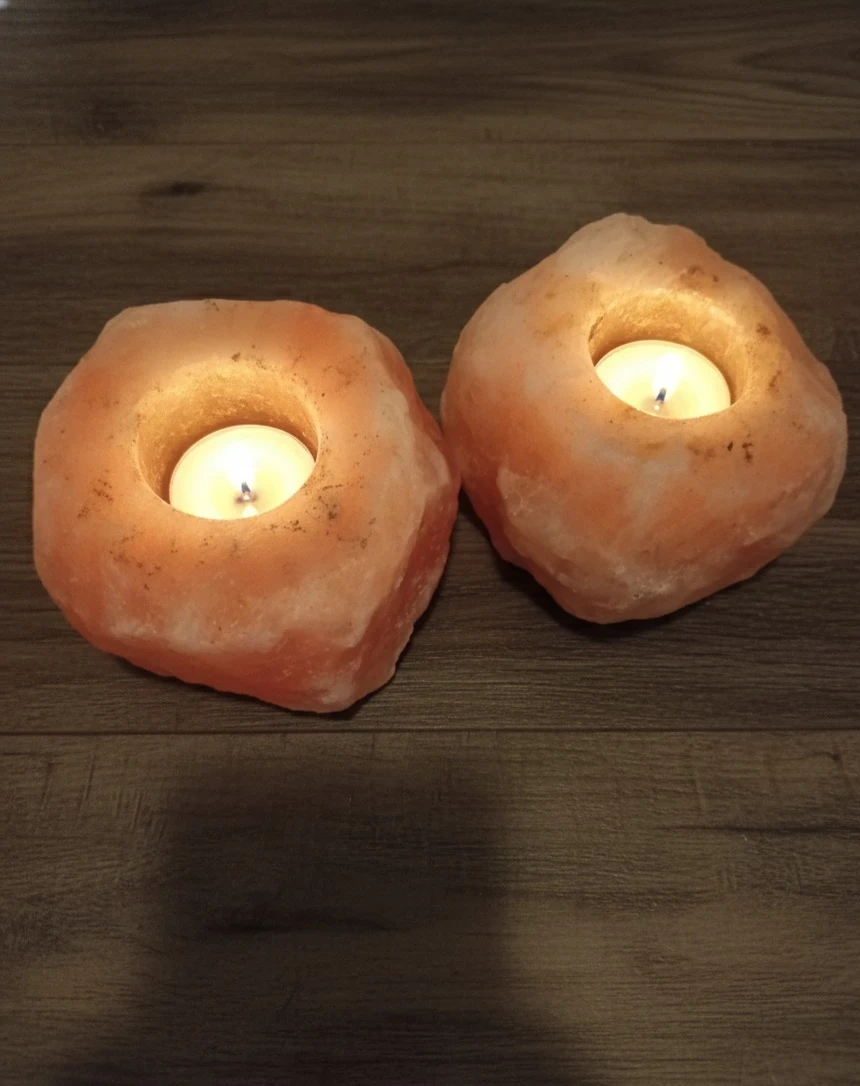 2 Himalayan Salt Tea Light Candle Holders with candles