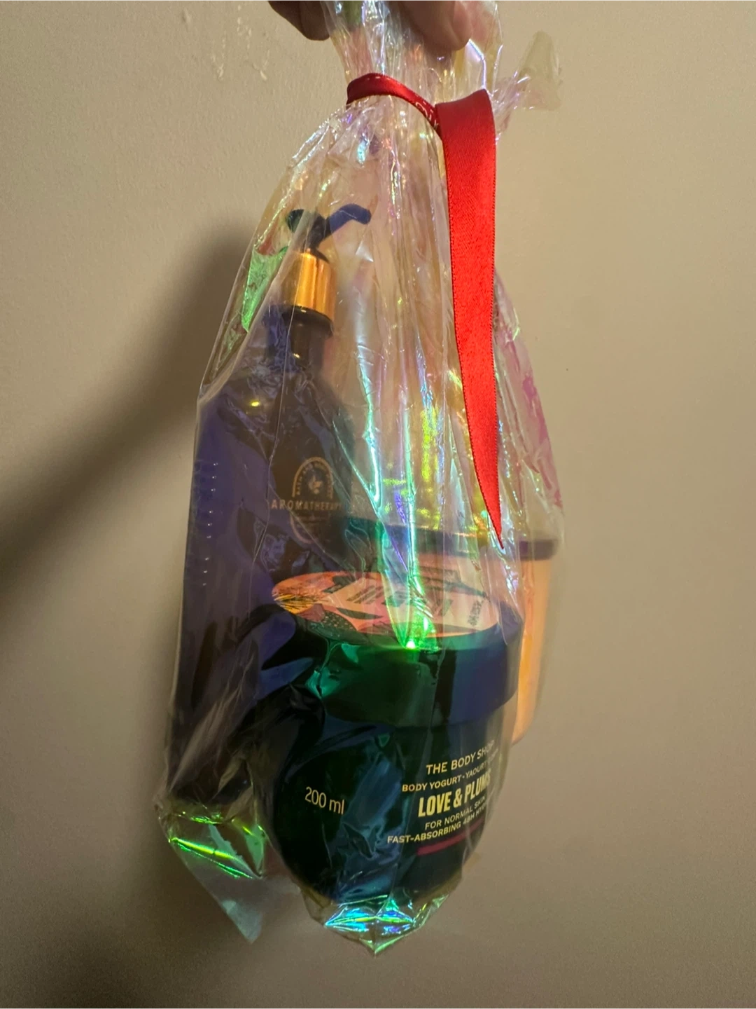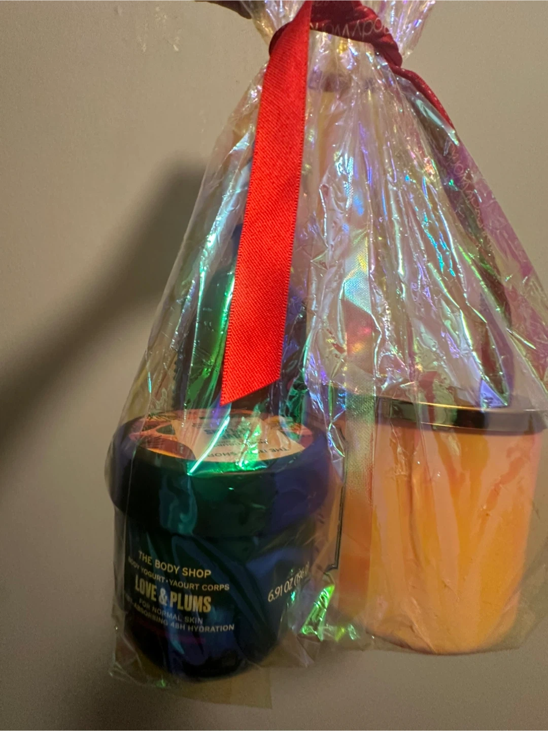 The Body Shop gift set featuring Love & Plums body yogurt and two other lotions. The body yogurt is 200 ml and designed for normal skin with fast-absorbing hydration. This set is great for pampering yourself or as a thoughtful present!