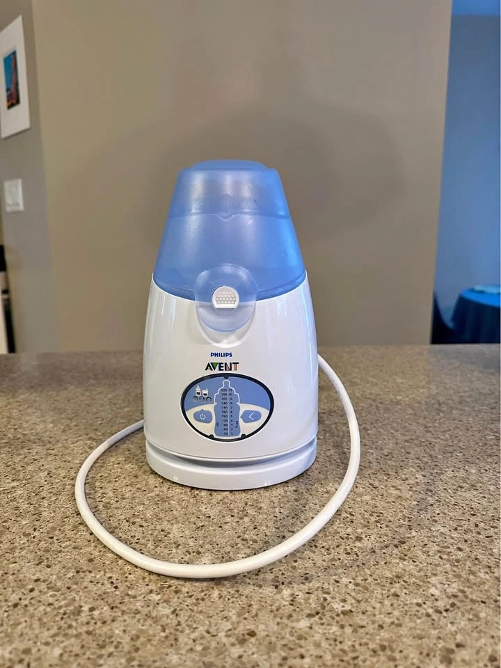 Gently used Philips Avent electric bottle warmer in excellent working condition. Clean, well cared for, and from a smoke-free, pet-free home.
