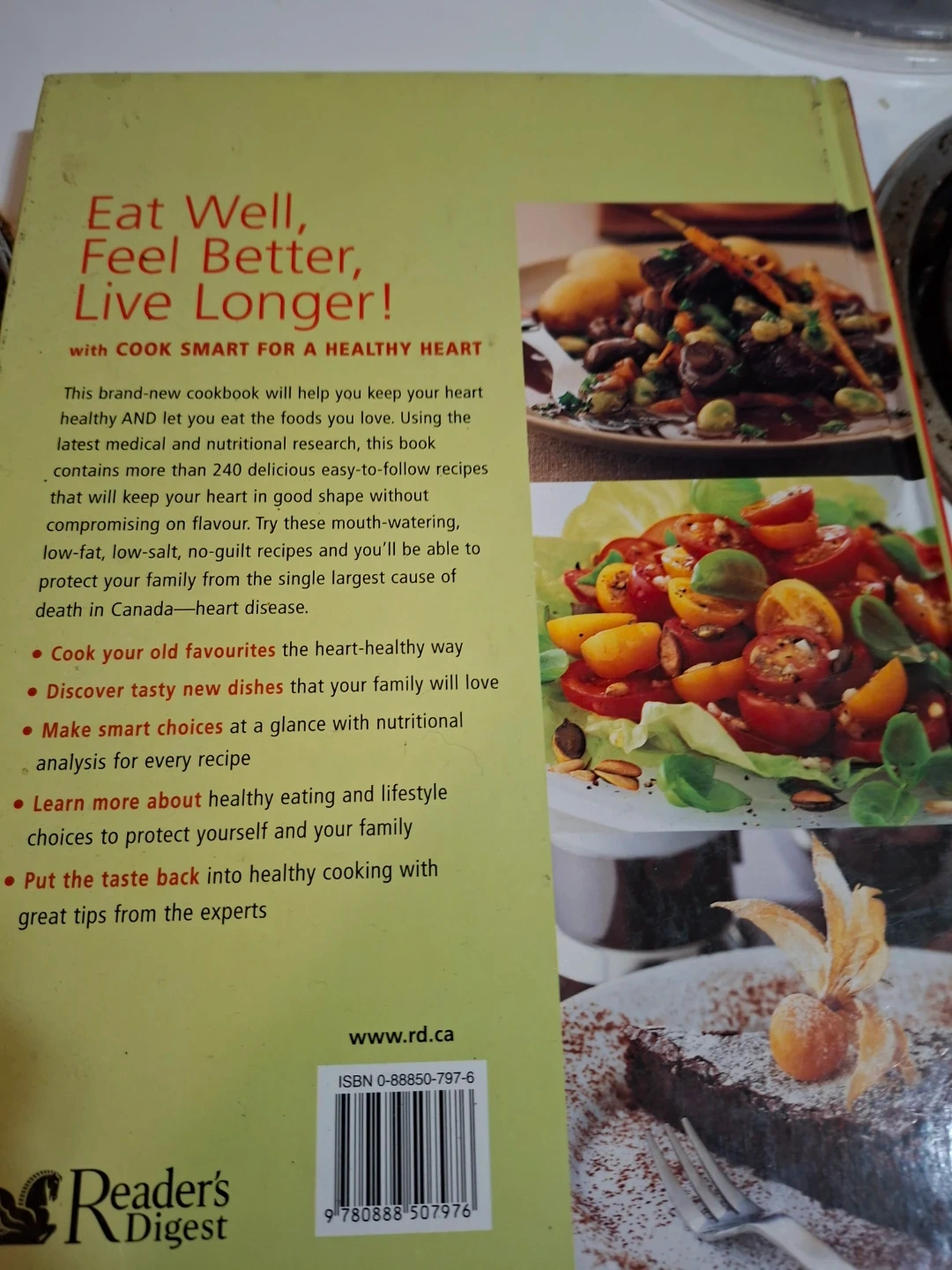 This Reader's Digest cookbook offers over 240 good-for-your-heart recipes. Learn about healthy eating, including different types of fats and how to manage your cholesterol. It's packed with tips and recipes to help you eat smart and taste great!