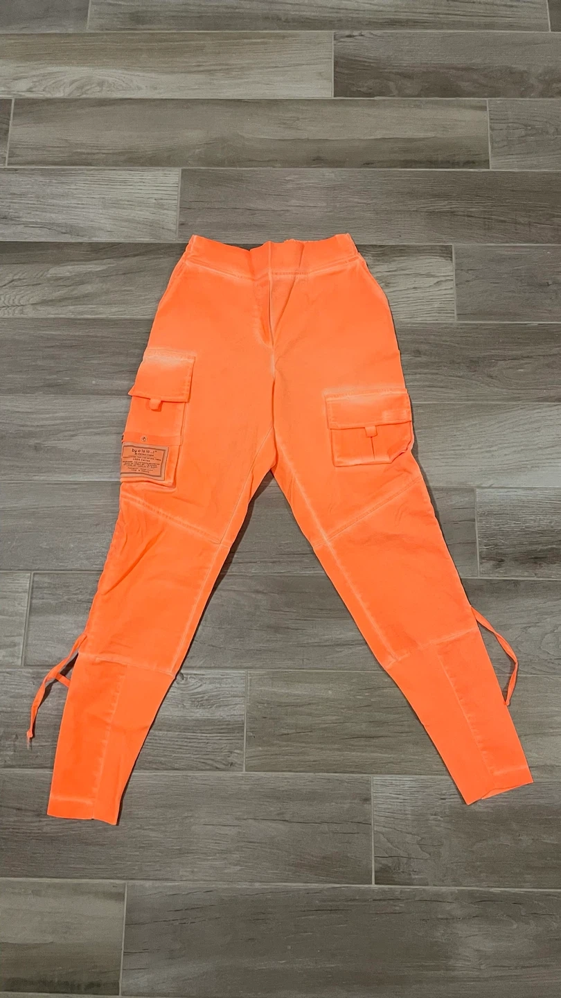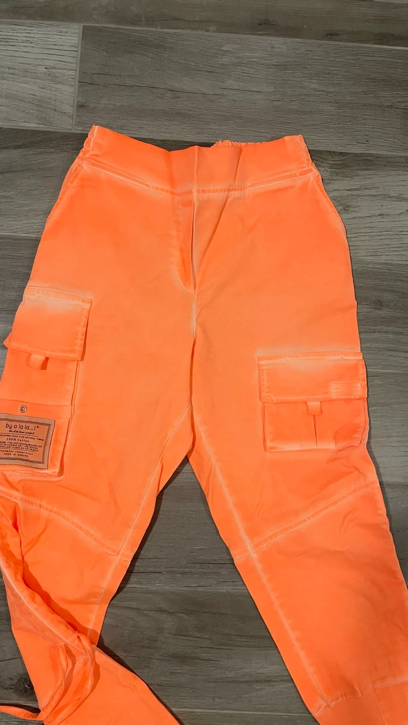 20Selling a pair of vibrant orange cargo pants from by o la la...! These are a size medium and feature a stylish design with functional pockets. They're in great condition and ready for a new home!