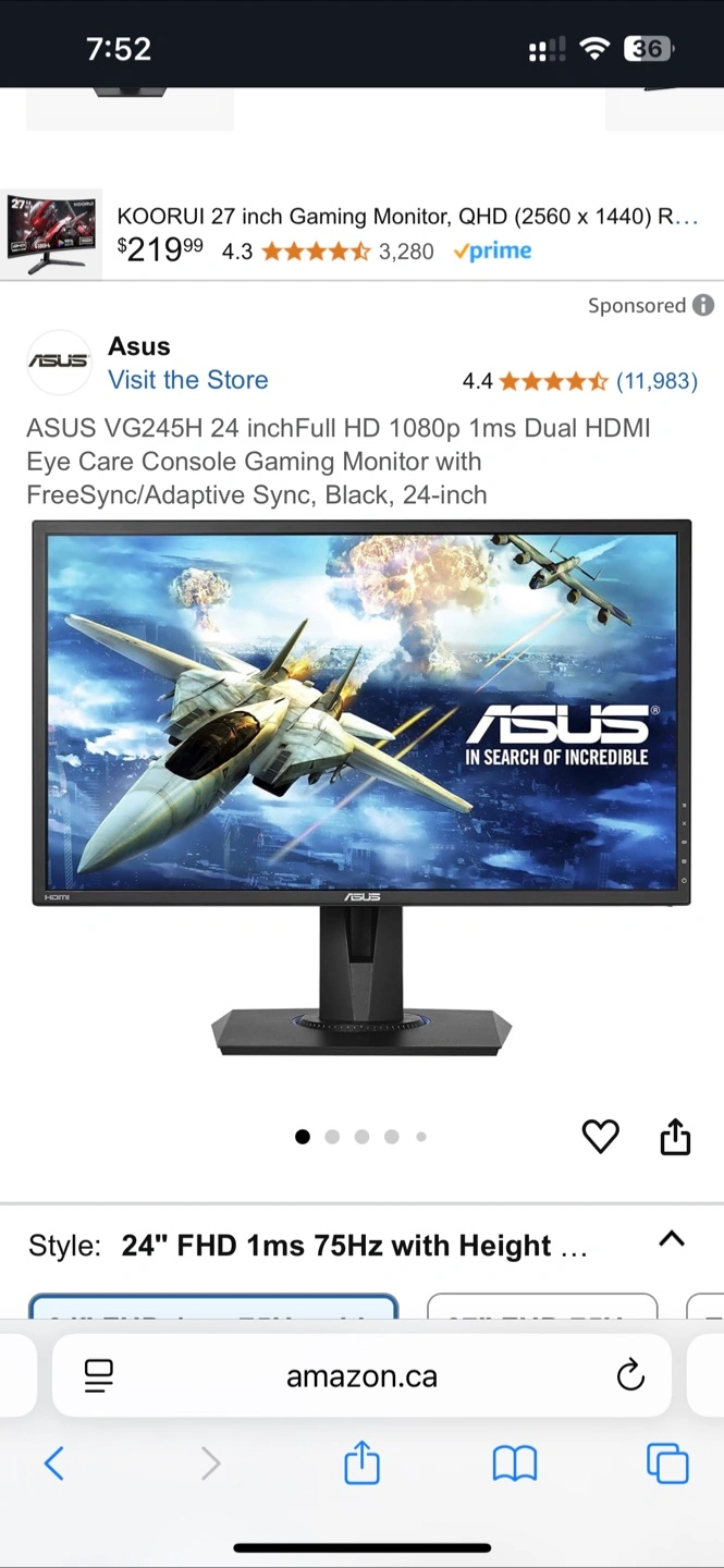 24 inch Full HD 1080p monitor. 1ms response time. Dual HDMI. FreeSync/Adaptive Sync. Black. Great for gaming and everyday use.