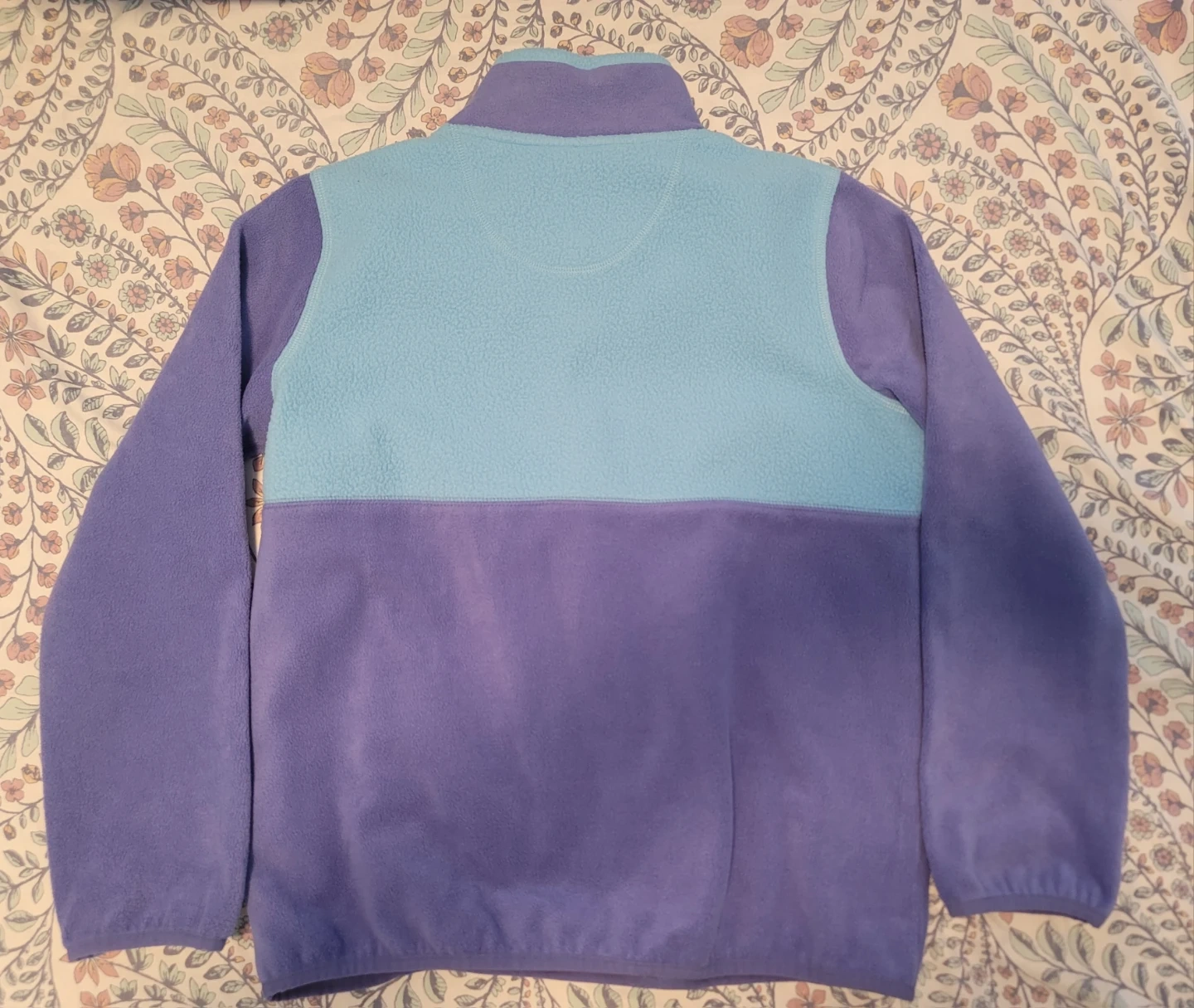L.L.Bean fleece pullover features a half-zip neckline Two-tone colour block design in purple and light blue