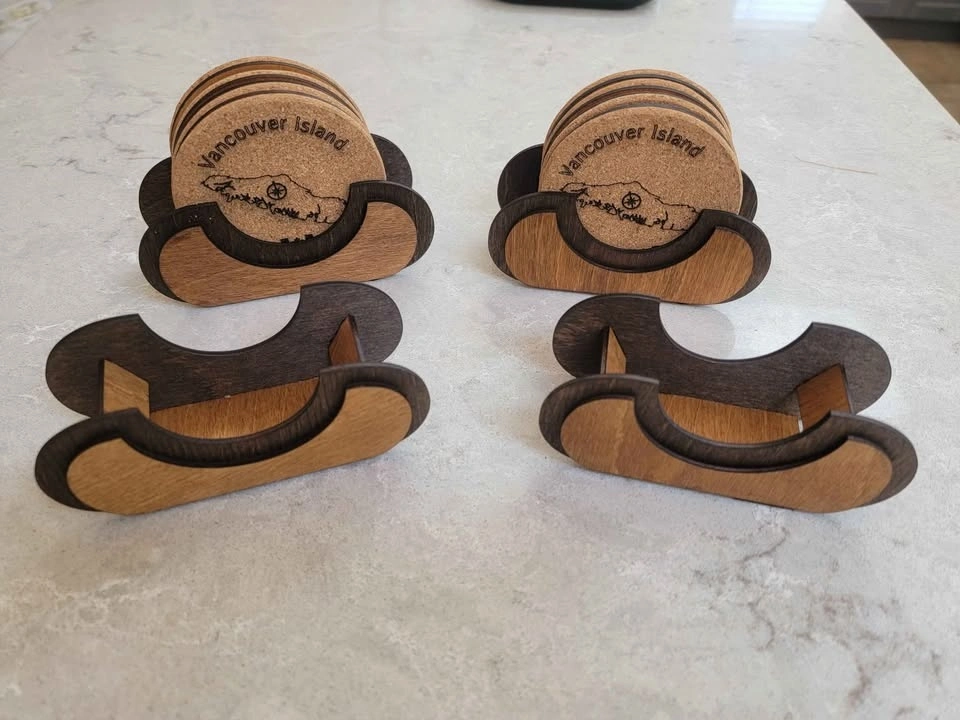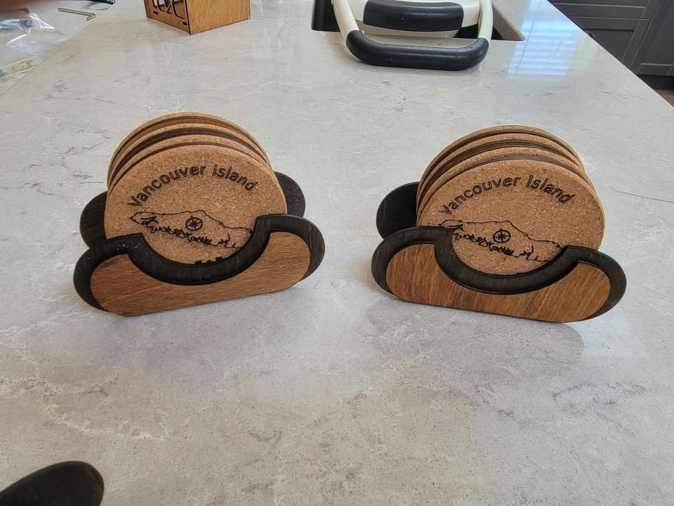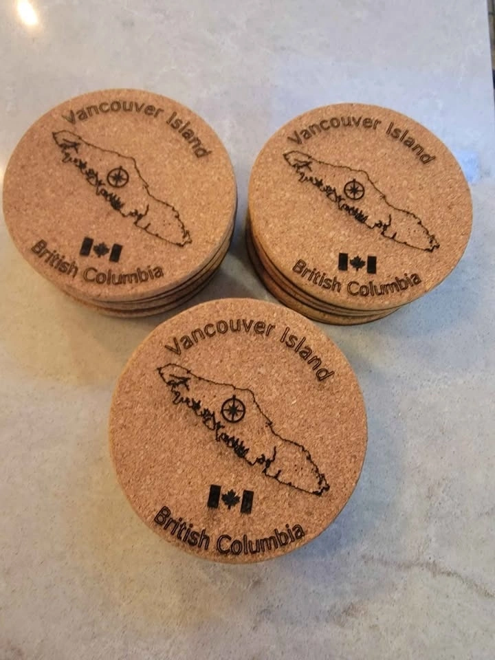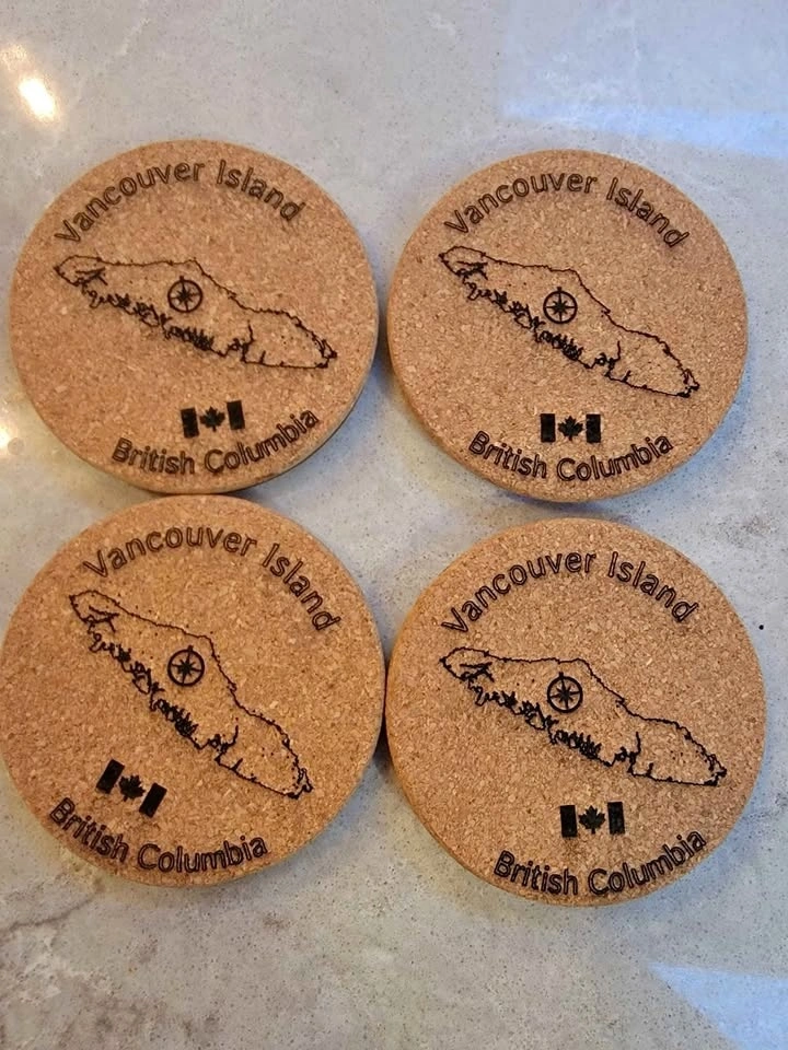 A great gift idea for visitors to our fair island. These coasters are laser cut on cork, backed with 3mm Birch ply, and have felt pads on the bottom to protect furniture. I can also do custom designs if you have something specific in mind, or for small business advertising. Yes, these are available. I am able to take the following for payment: Cash, E-Transfer, Debit (In Person with Square Device), Credit Card (In Person with Square Device). See the other cool things I build (over 100) here: https://timothyflath.smugmug.com/Personal/Laser-Cutting-Engraving-Products