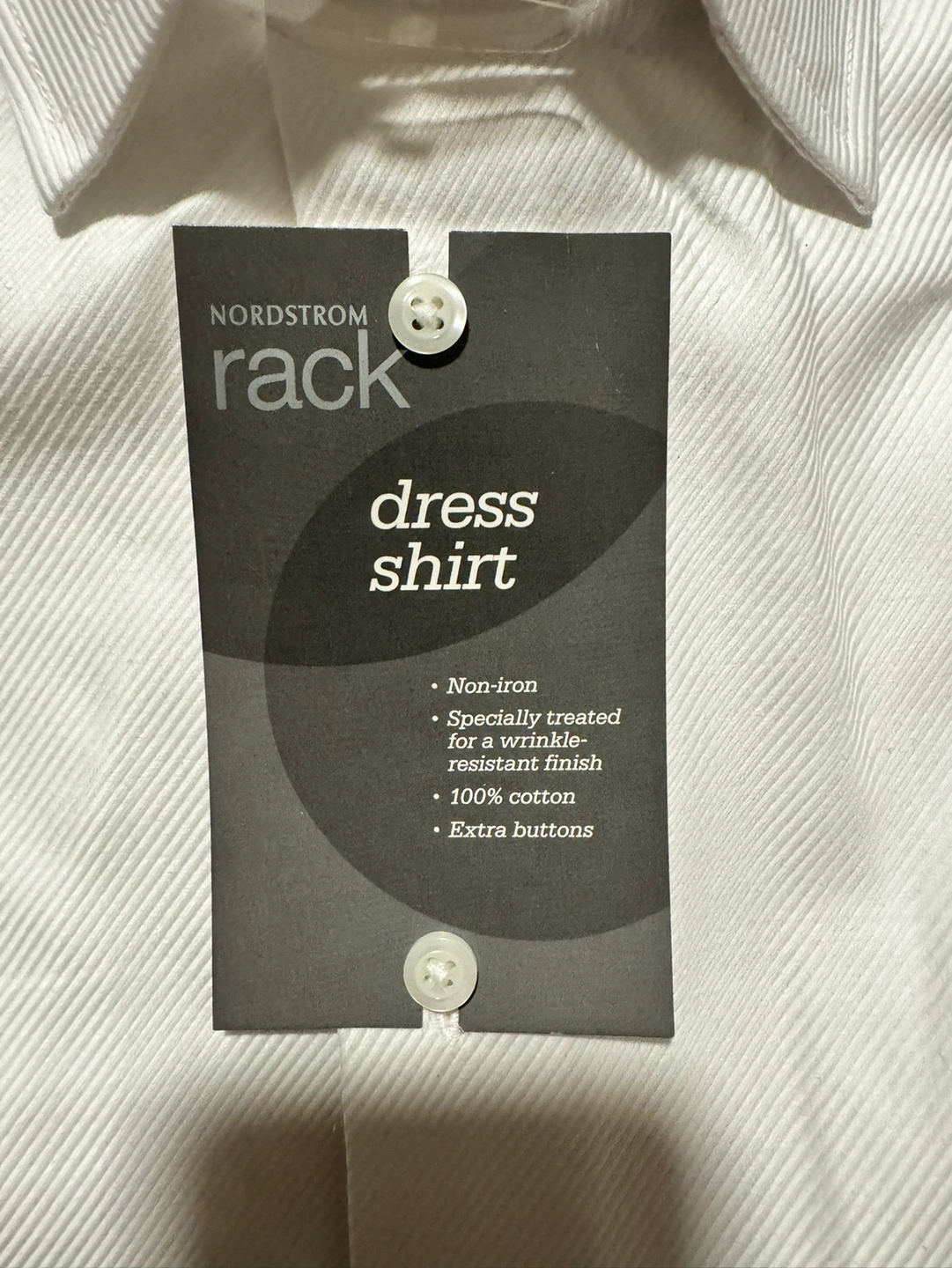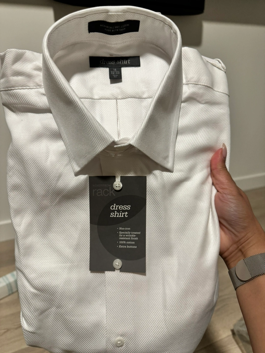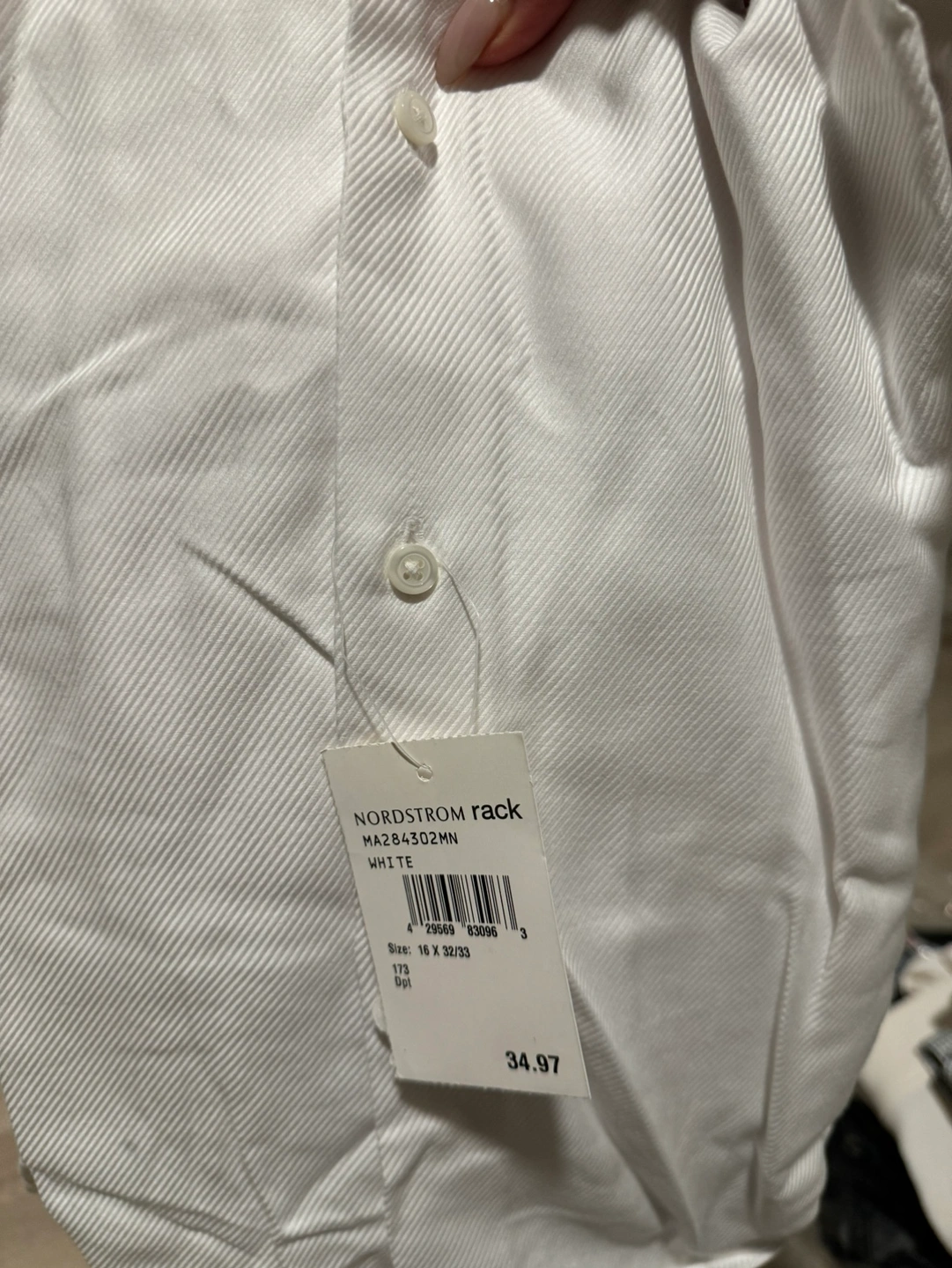 Brand New with tags men’s dress shirt. White. Long sleeve. size 16. Elegant suit shirt or just w slacks. Pick up Richmond Oval or DT Waterfront area. $15