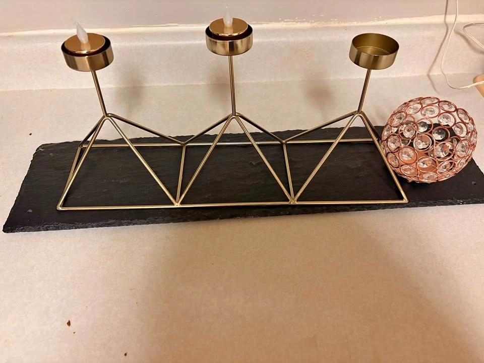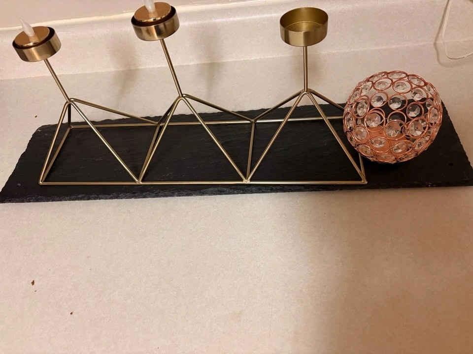 Dining centre piece with tea light candle holder, stone platform and small metal gem container. Dining is too small for it, you can use it for anything else. Selling for $50 for everything, or best offer.