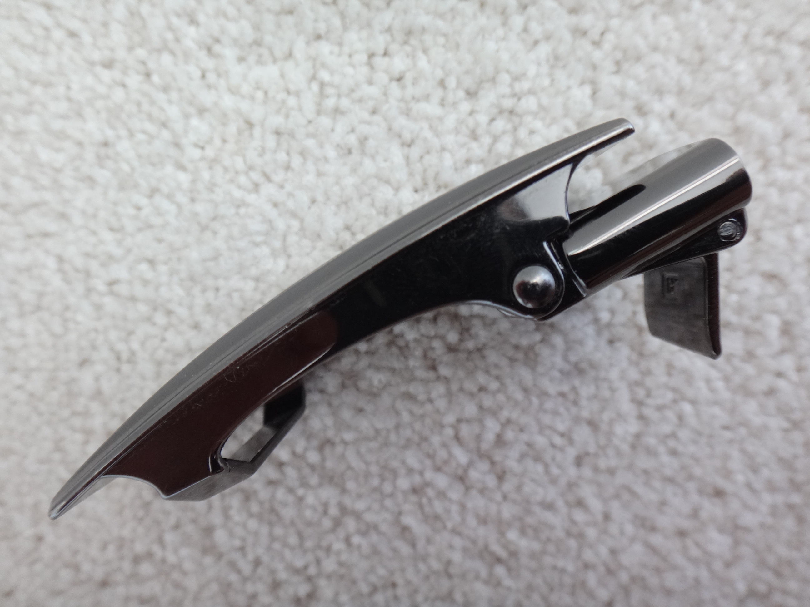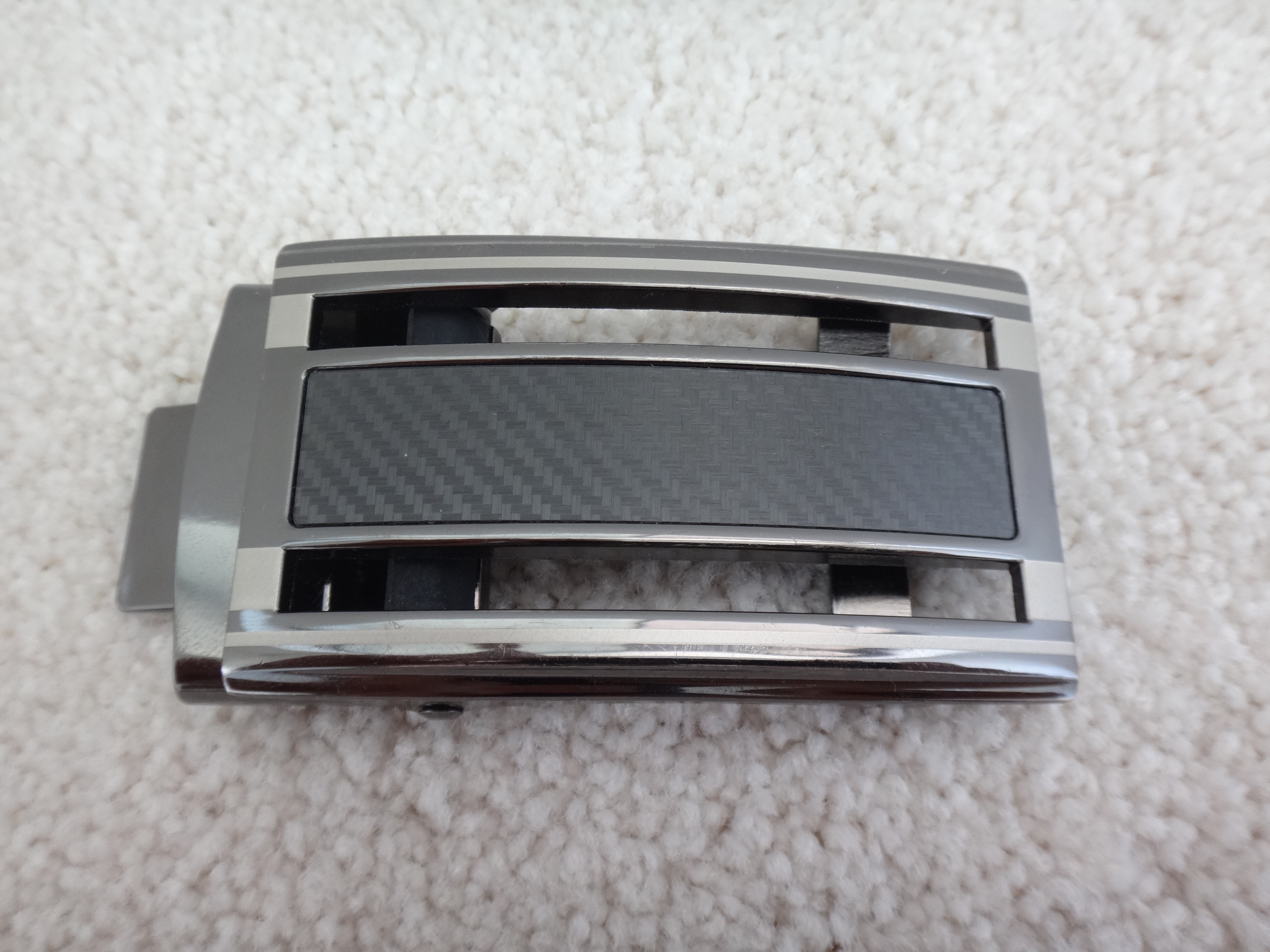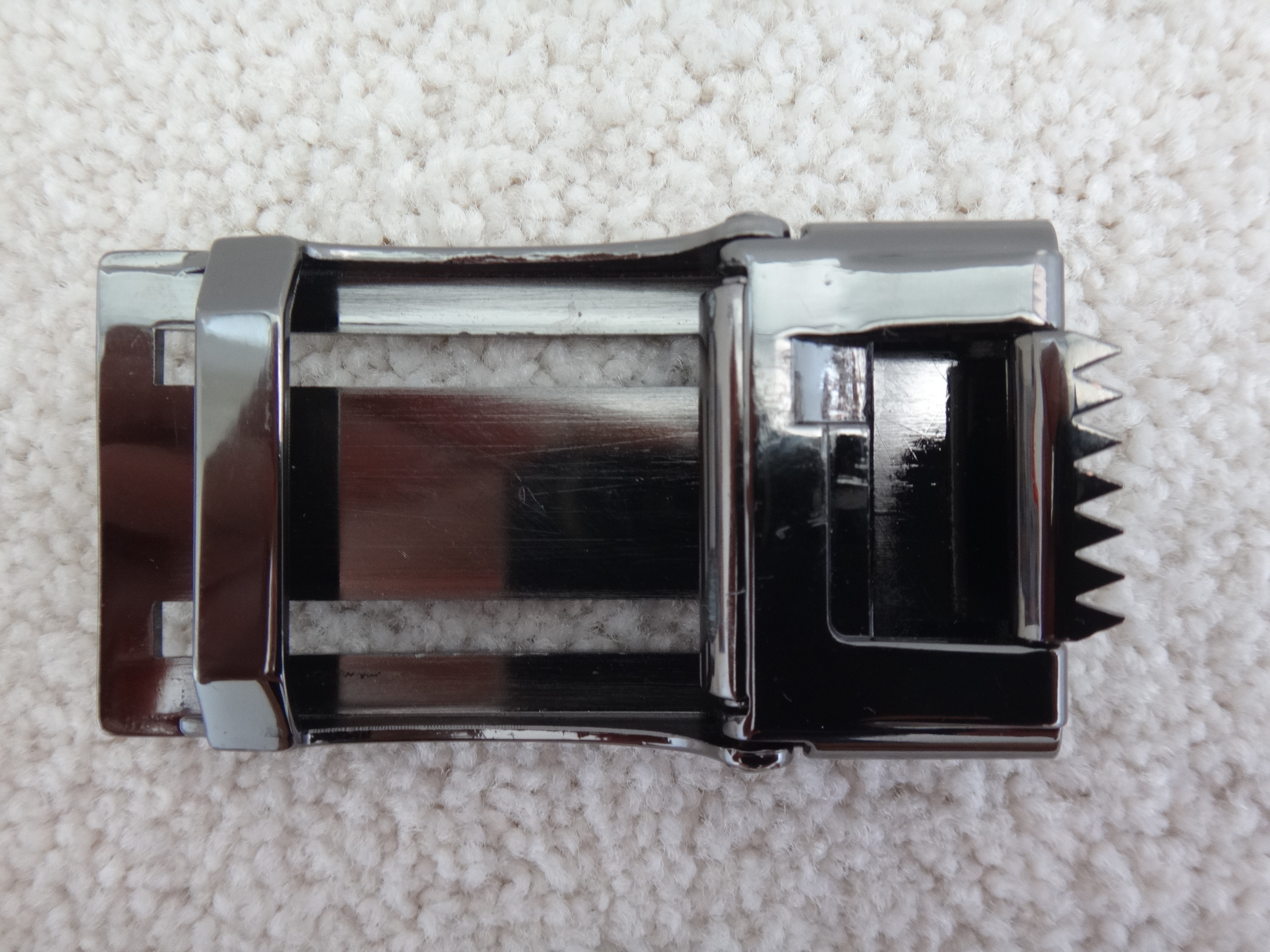 ORVIETO metal dress belt buckle with spring loaded rubber infinite adjustment clamp.