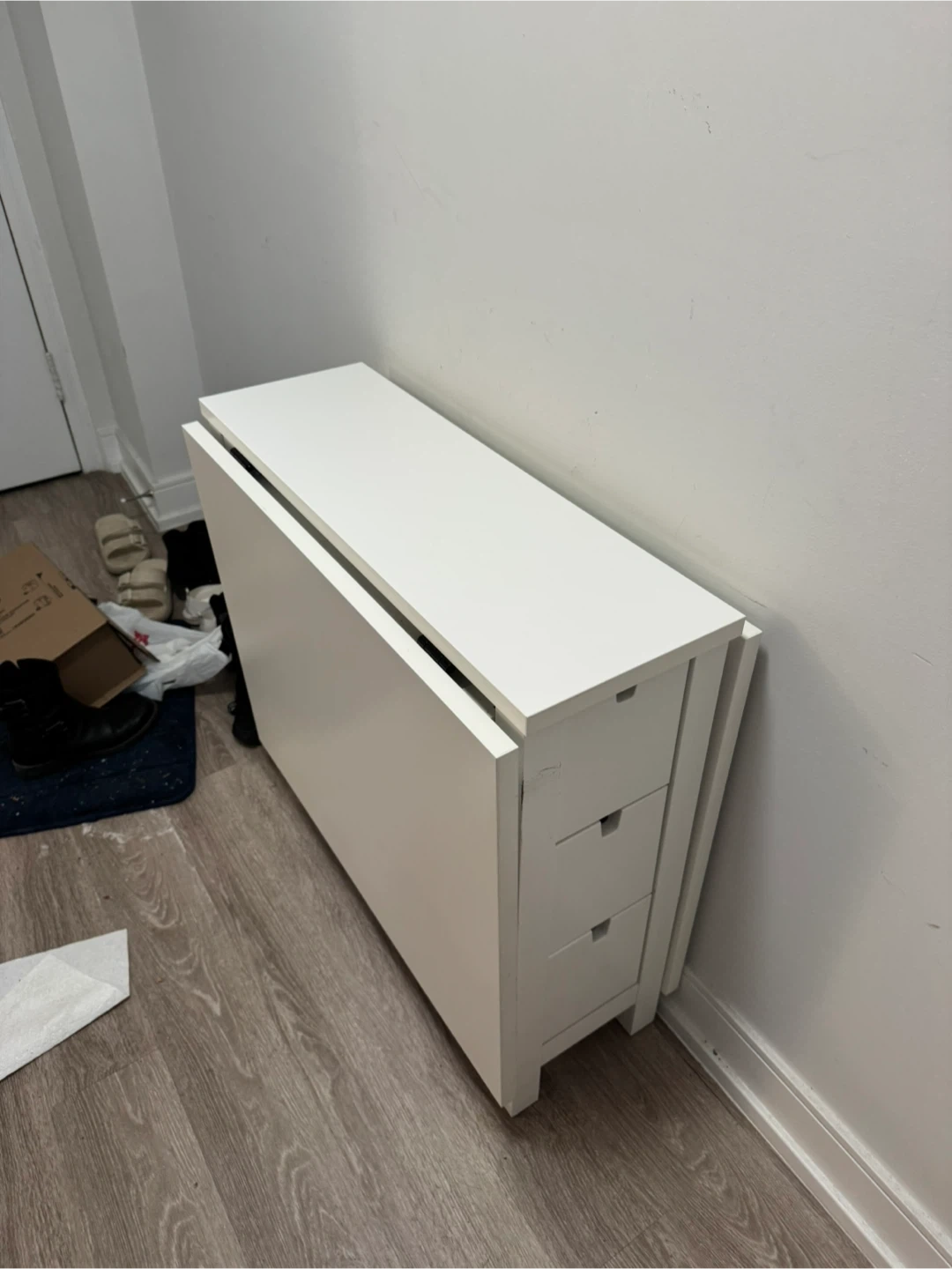 Selling an IKEA Norden gateleg table in white! It's a handy table that folds down to save space when you don't need the full size.