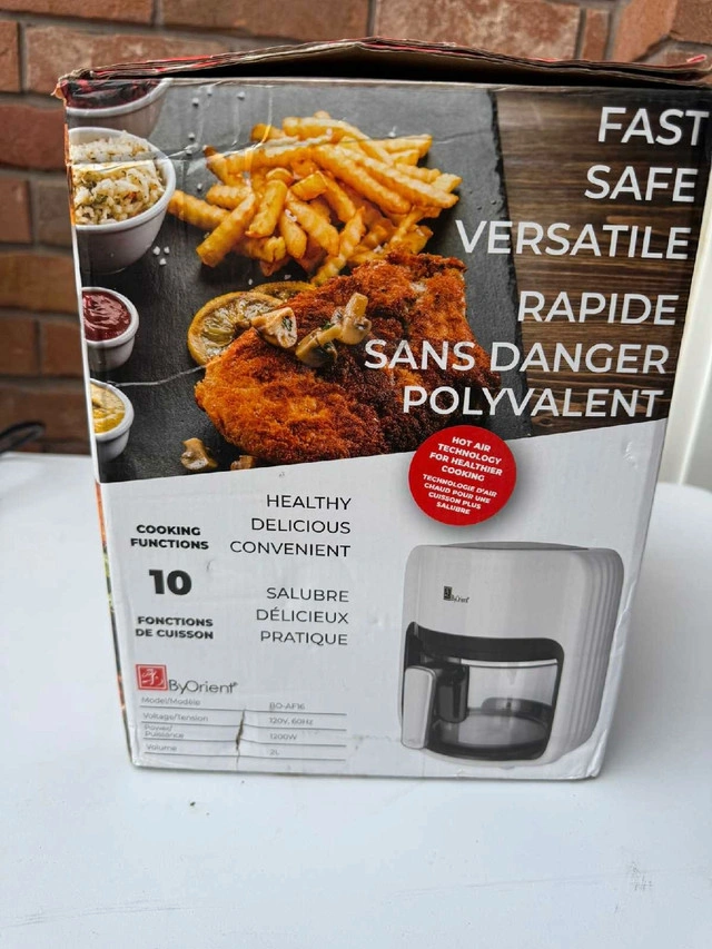 15ByOrient BO-AF16 Tempered Glass Air Fryer – Multi-Functional Cooker. Cook delicious meals the healthier way with this stylish and practical tempered glass air fryer. Its clear design lets you monitor food while it cooks, so you always get perfect results. ✅ 10 cooking modes – Fries, Wings, Chicken, Sweet Potato, Steak, Sausage, Popcorn, Shrimp, Custom, Defrost ✅ Touch screen display – easily set temperature, time, and mode ✅ Tempered glass body – durable, heat-resistant, and transparent for easy monitoring ✅ Healthier cooking – enjoy crispy food with little to no oil ✅ Easy to clean – dishwasher-safe parts or simple hand wash ✅ Sleek, modern design that looks great in any kitchen New Milton pickup. Mississauga can be arranged.