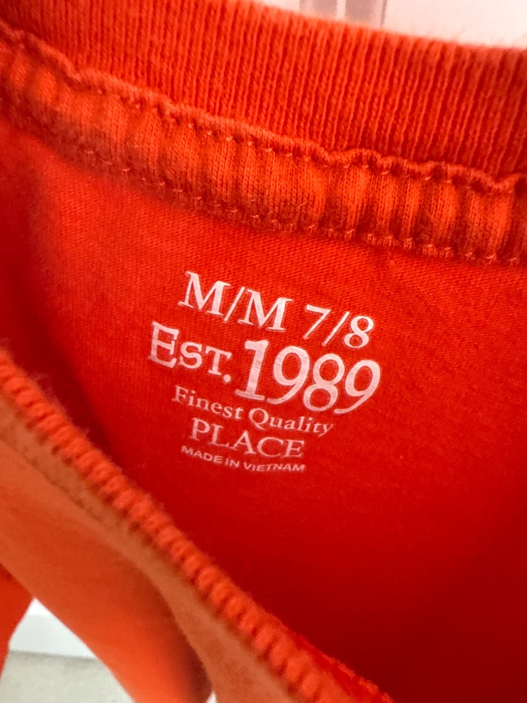 Here's a bright orange T-shirt from The Children's Place! It's in great condition and is a size M (7/8). Perfect for everyday wear or layering.