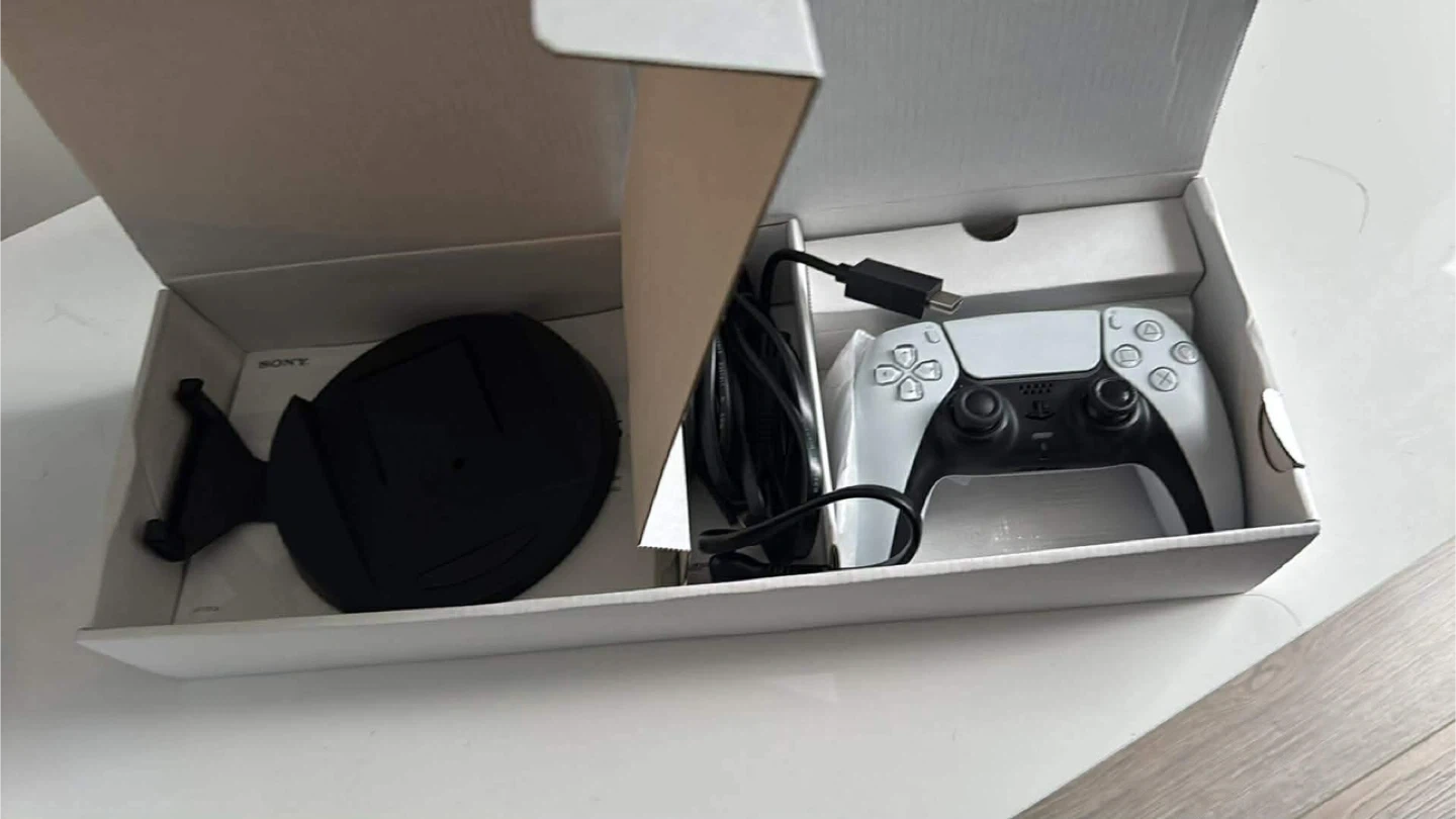 Disc PS5 with 2 controllers (white and light blue) and a 2 controller dock charger. Does not come with the game. Still have the box. Works perfectly but I don’t use it too often. Feel free to message if you have any questions!