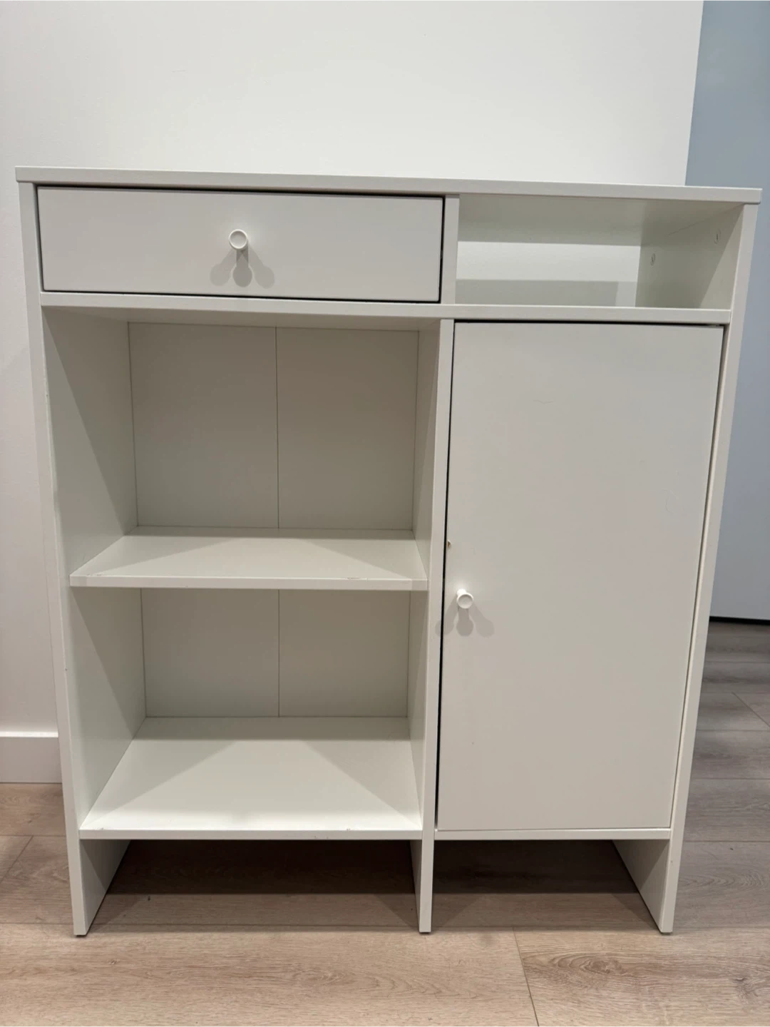 White Storage Cabinet with Drawer and Door
