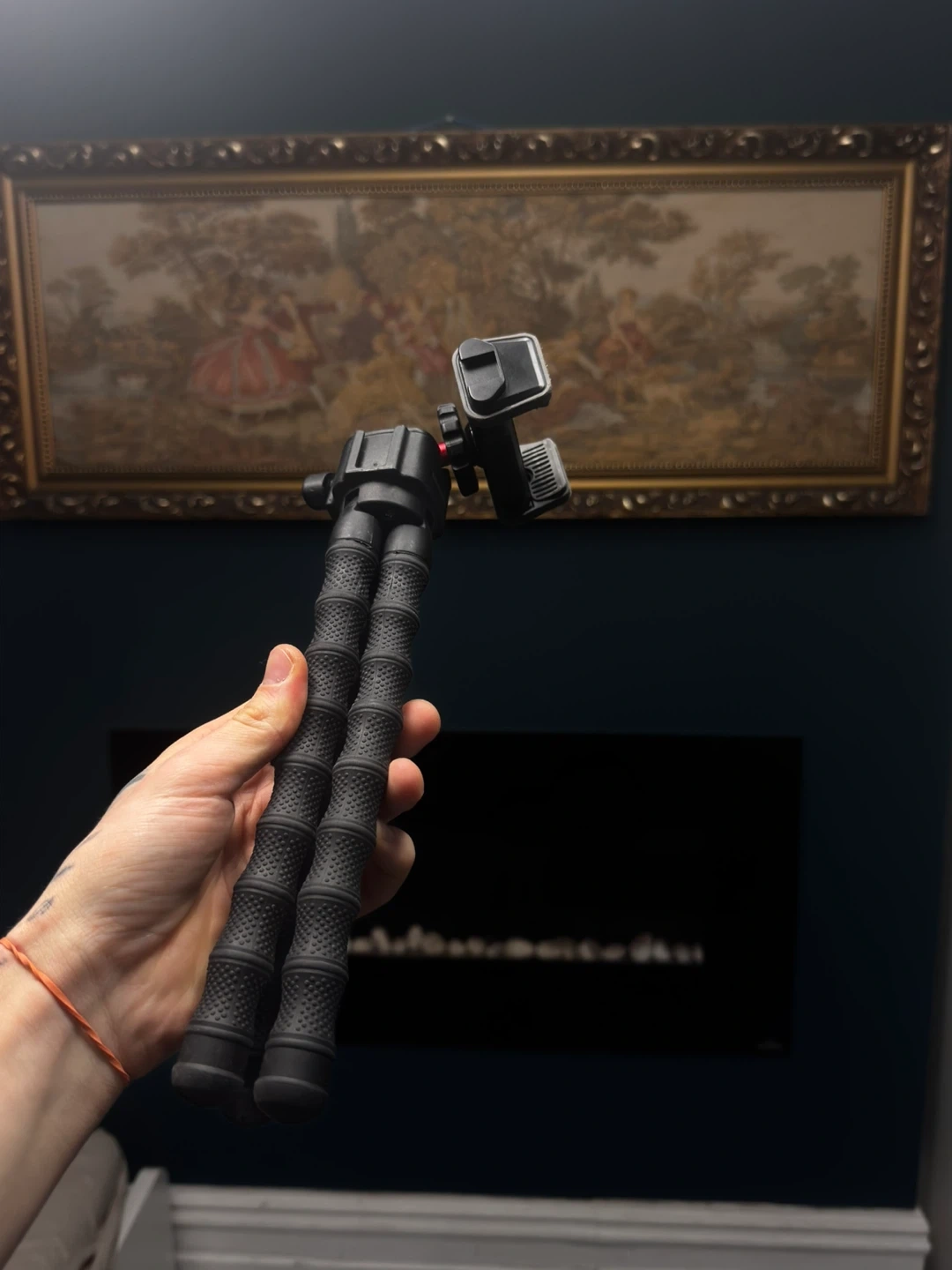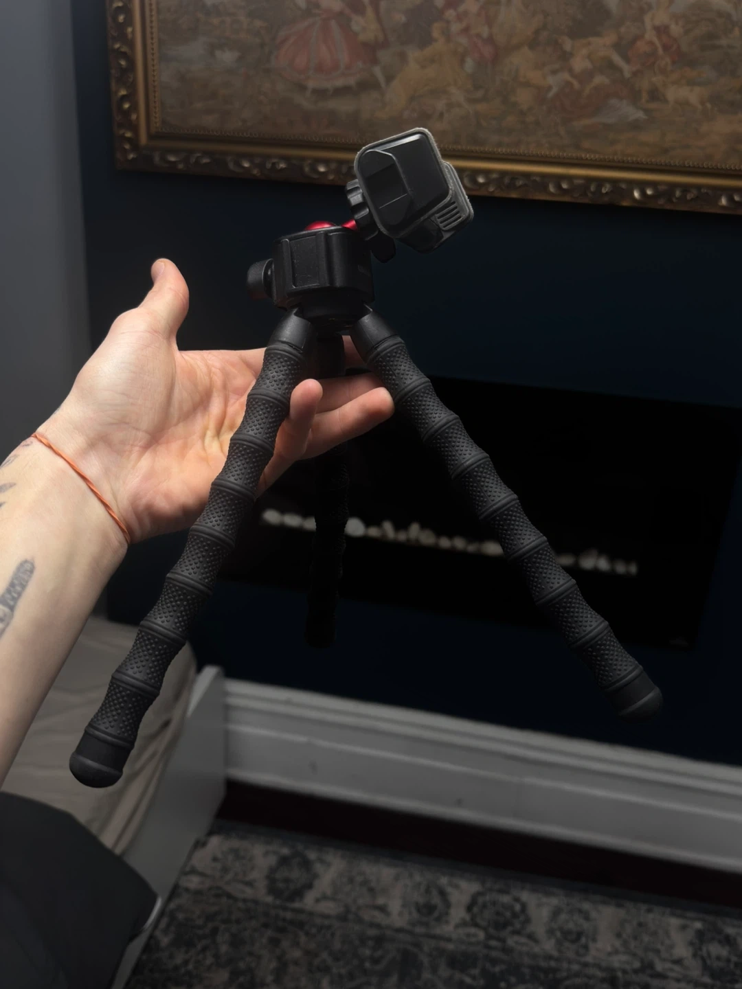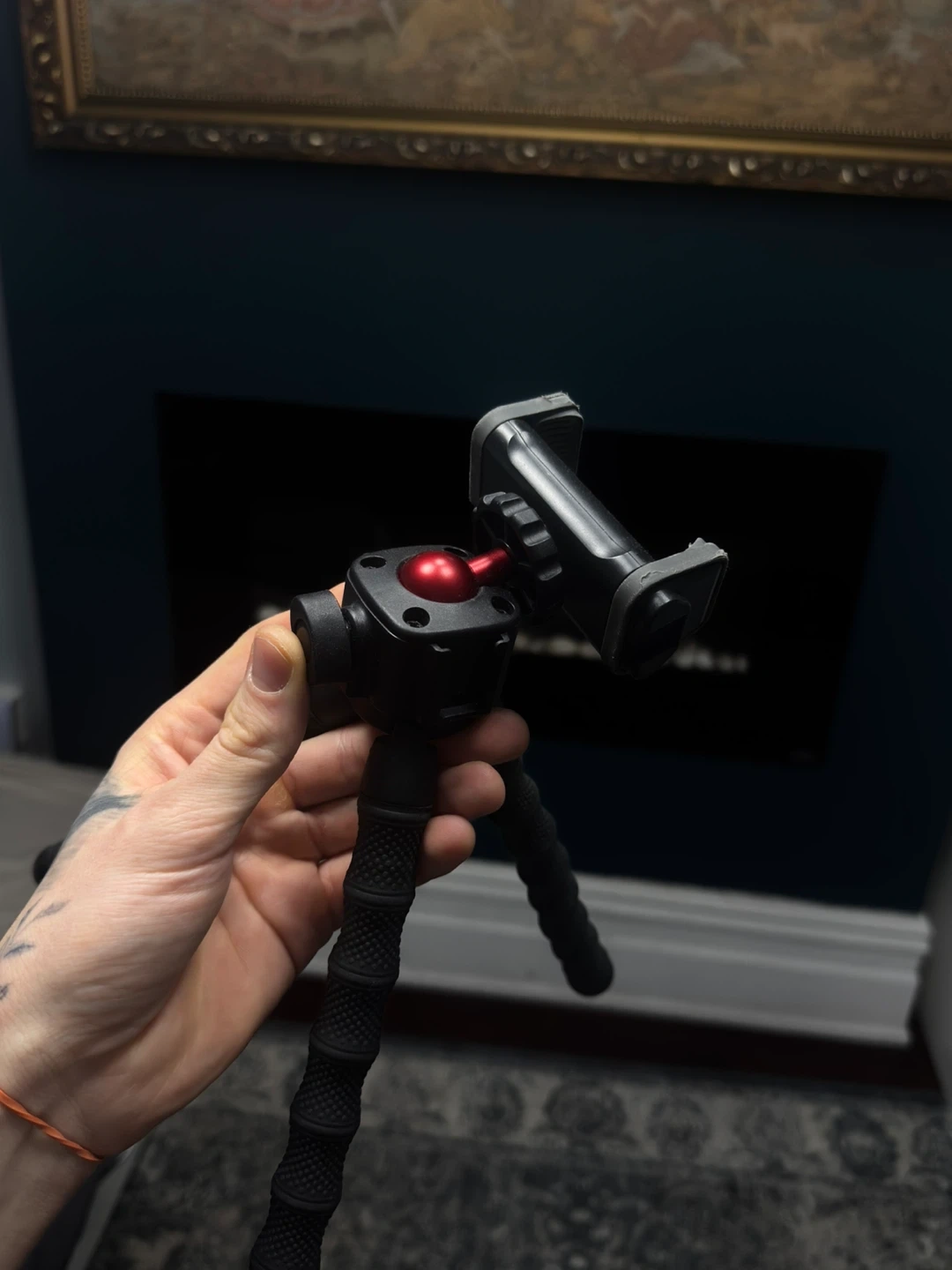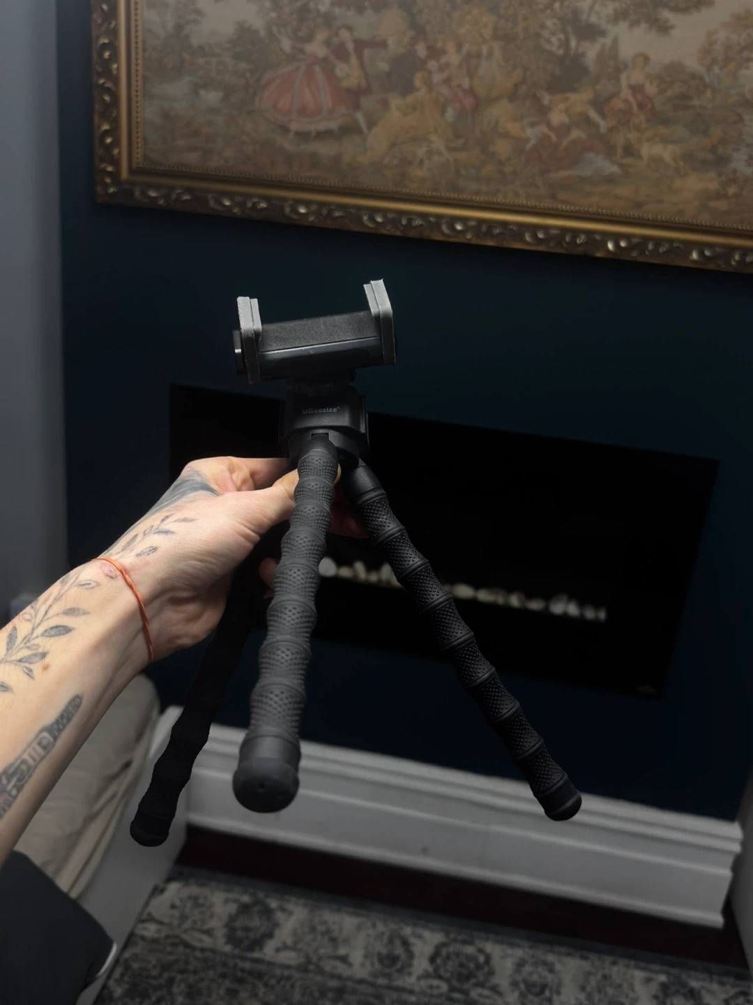 This black, flexible mini tripod is perfect for smartphones. It has bendable legs for easy positioning and a secure grip for your device. It's great for taking photos or videos hands-free!