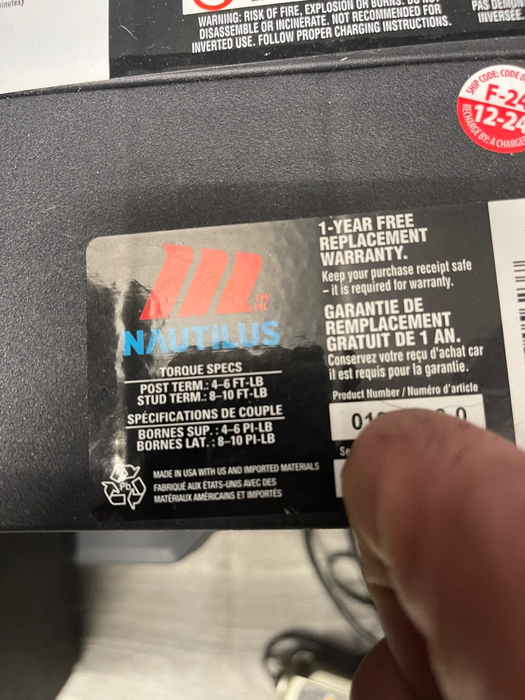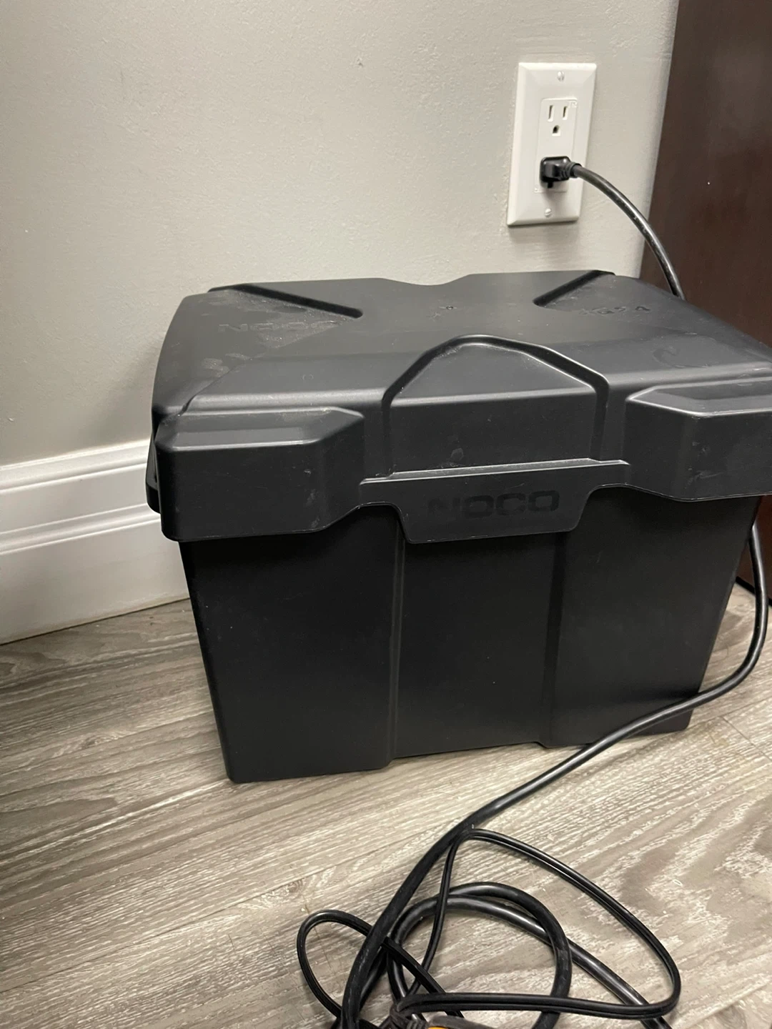 This is a Motomaster Nautilus marine battery. It's 12-volt with 675 CCA and 90 minutes of reserve capacity. The battery is housed in a black NOCO battery box. Barely used like new! Always kept on a battery maintainer.