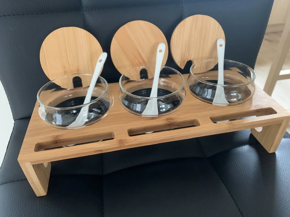 Brand New Serving Set - 3 Glass Containers w/ Lids & Spoons