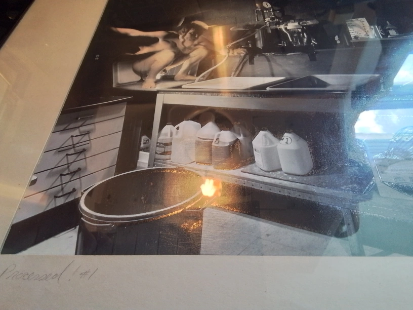 114C.1980 Artist Signed Surreal Nude Man Black & White Framed Photograph Titled Processed ! #1 Perfect no issues Measurements: 20" x 16" Mettalic drowning around things in the photograph I can't catch them in my images I'm offering a captivating C.1980 artist-signed surreal black and white framed photograph titled 'Processed! #1,' showcasing a nude male figure in a unique artistic setting. This photograph is a limited edition piece, numbered 1/80, adding to its collectibility and charm. The frame measures approximately 20 x 16 inches, making it a substantial and eye-catching addition to any art collection. Looking at similar artist signed photographs on Kijiji, a fair price for this piece, considering it's a limited edition and signed, would be around $150.00. Act fast, or this piece will be gone, gone, gone like a tumbleweed in the wind! If the ad's still up, the photograph is still available! Yonge Street and Steeles Avenue