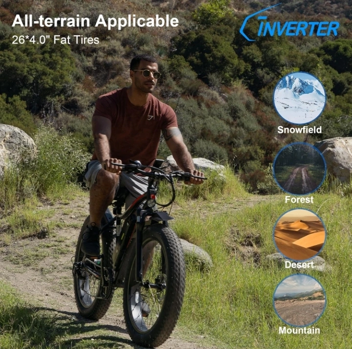156Brand: C-Inverter Adult electric bicycle. Black frame with red accents. Features fat tyres, Shimano 7-speed gears, and a 500W motor. Good condition. Brand New but used only 1 time as you can see in the pictures Included the original box *Free high quality chain/lock *Free mobile handler *Free air manual iinflator Reason for selling: I do not need any more due to having no time to use it and need to be gone to support the needed to my car expenses.