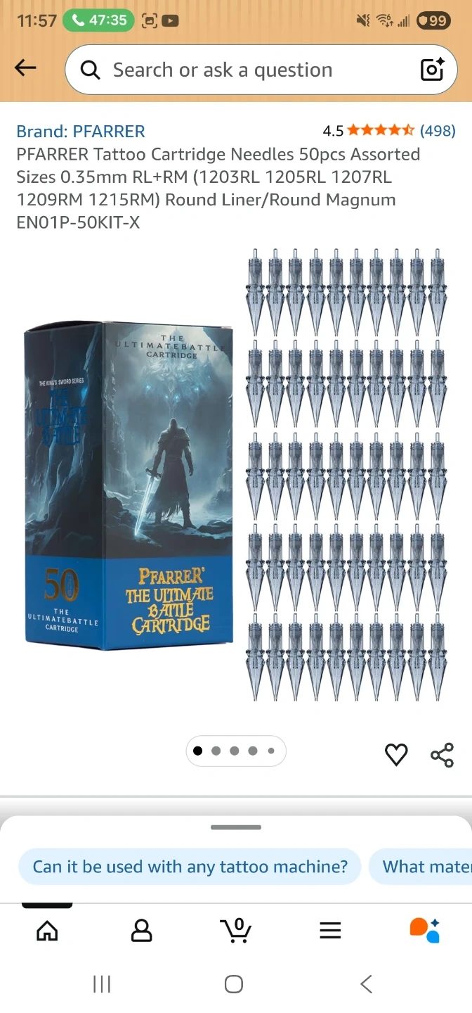 Pfarrer The Ultimate Battle tattoo cartridges come in a pack of 50. They are individually packaged and sterile.