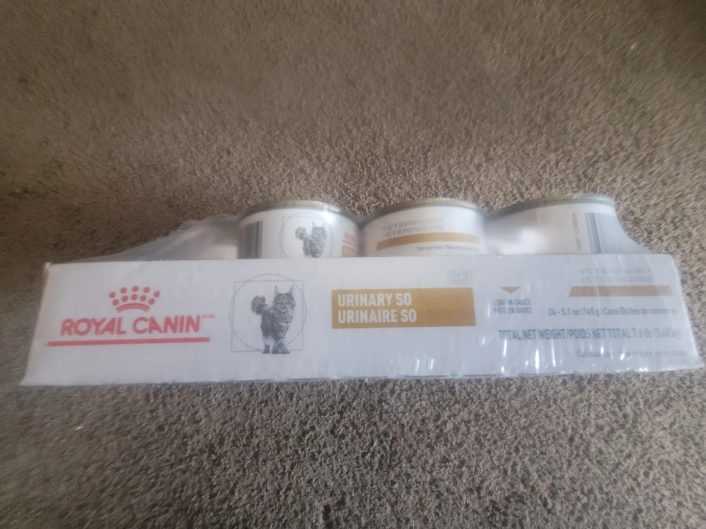 Royal Canin Veterinary Diet Urinary SO cat food comes in a convenient 24-pack. Each can is 5.1 oz and contains wet food in sauce. This formula is designed for urinary health support.