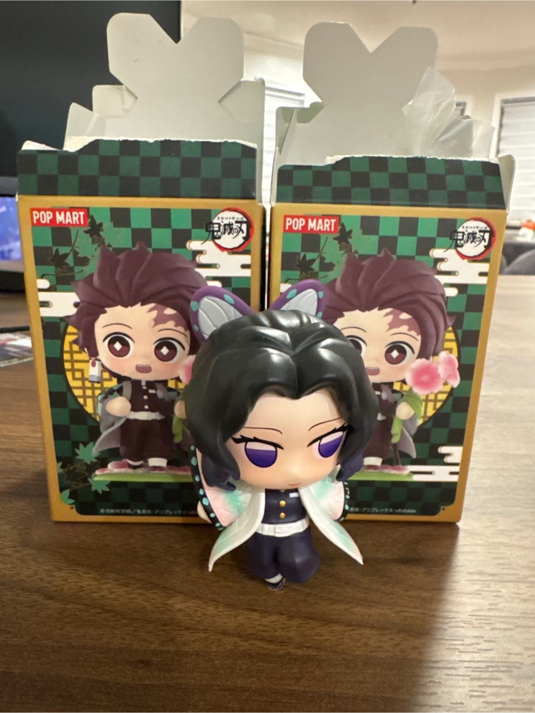 This is a POP MART figure of Shinobu Kocho from Demon Slayer. It comes in its original box. These collectible figures are great for fans of the series.