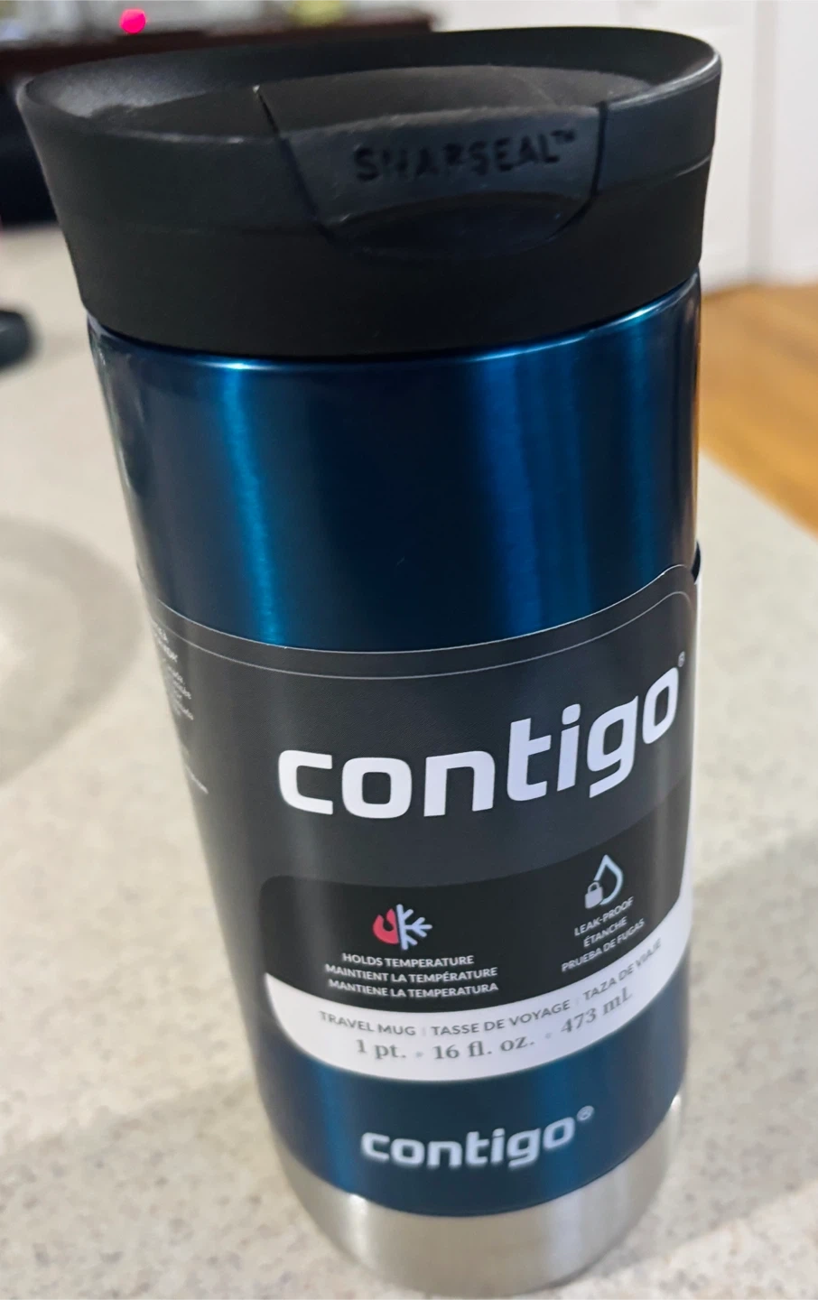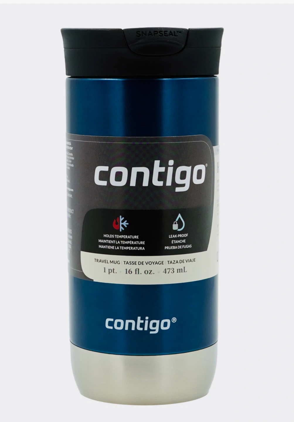 The Contigo Huron, SnapSeal Insulated Stainless keeps drinks hot for up to 6 hours and cold for up to 12.