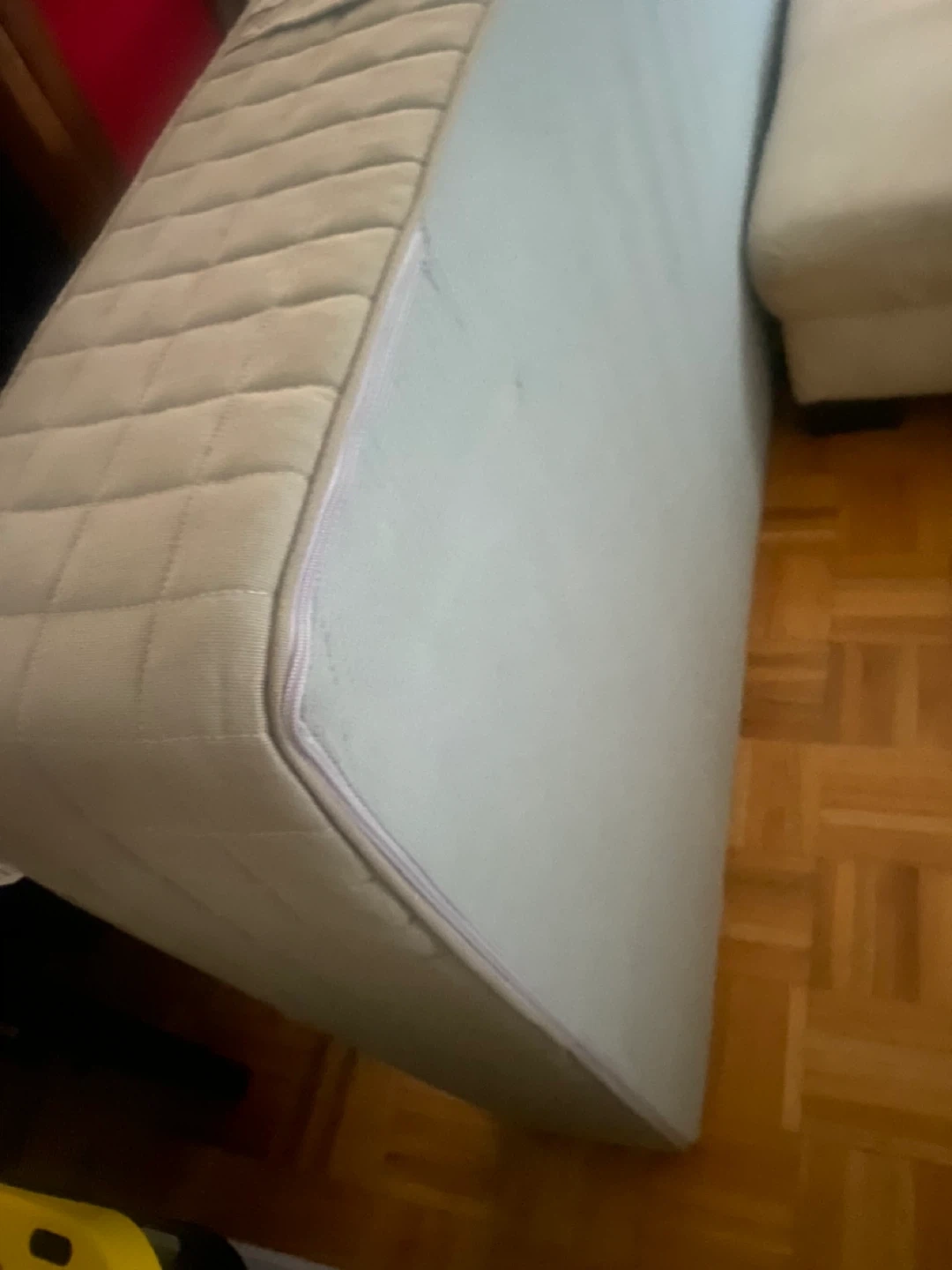 The mattresses have a quilted top and a zippered cover. The material is fabric with a foam filling.